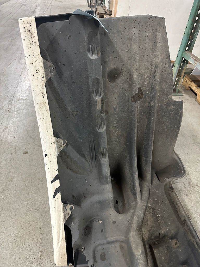 Used Passenger side fender extension from a 2016 Cascadia day cab non wrecked truck. Has scratches and dings from use, Plastic Splash Shield...