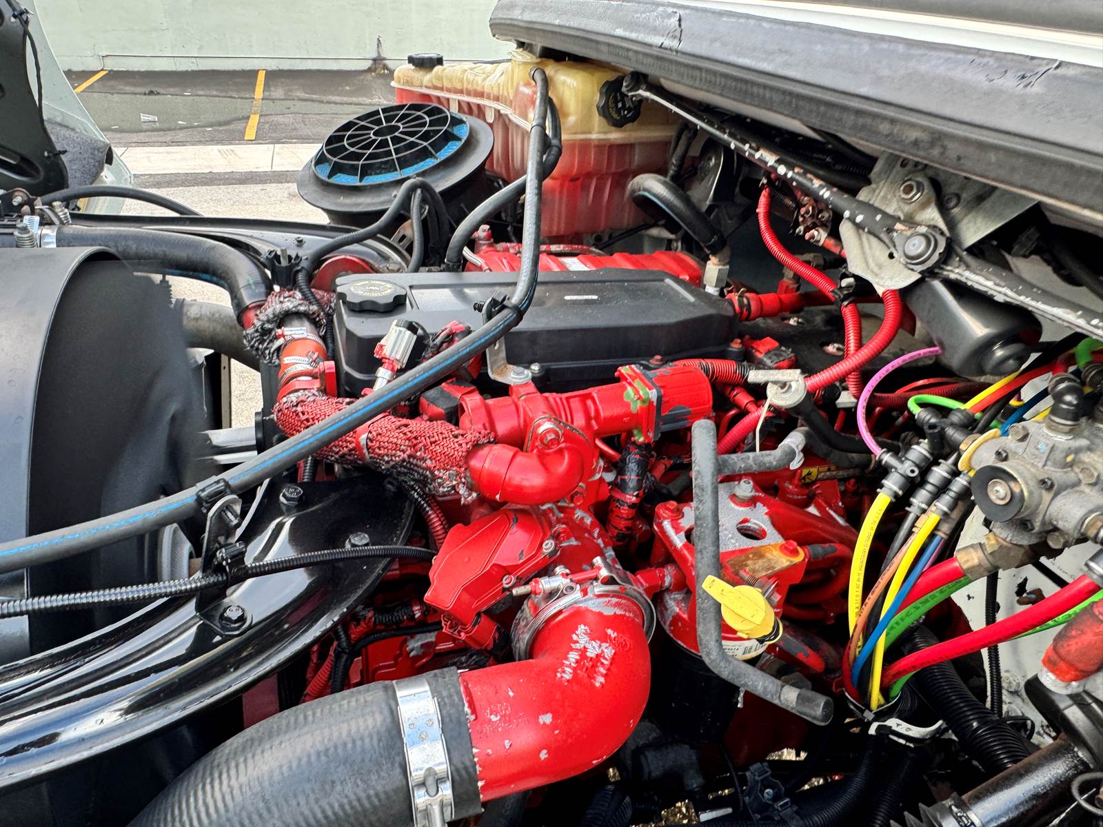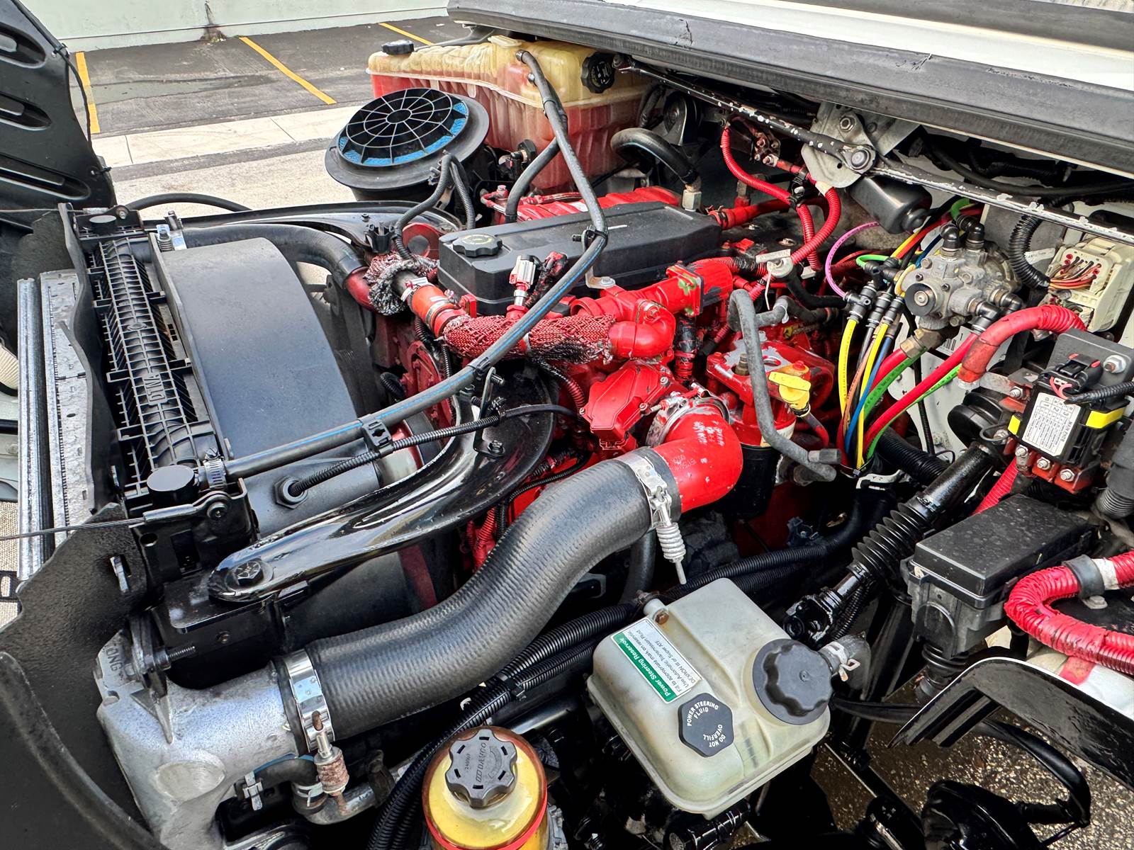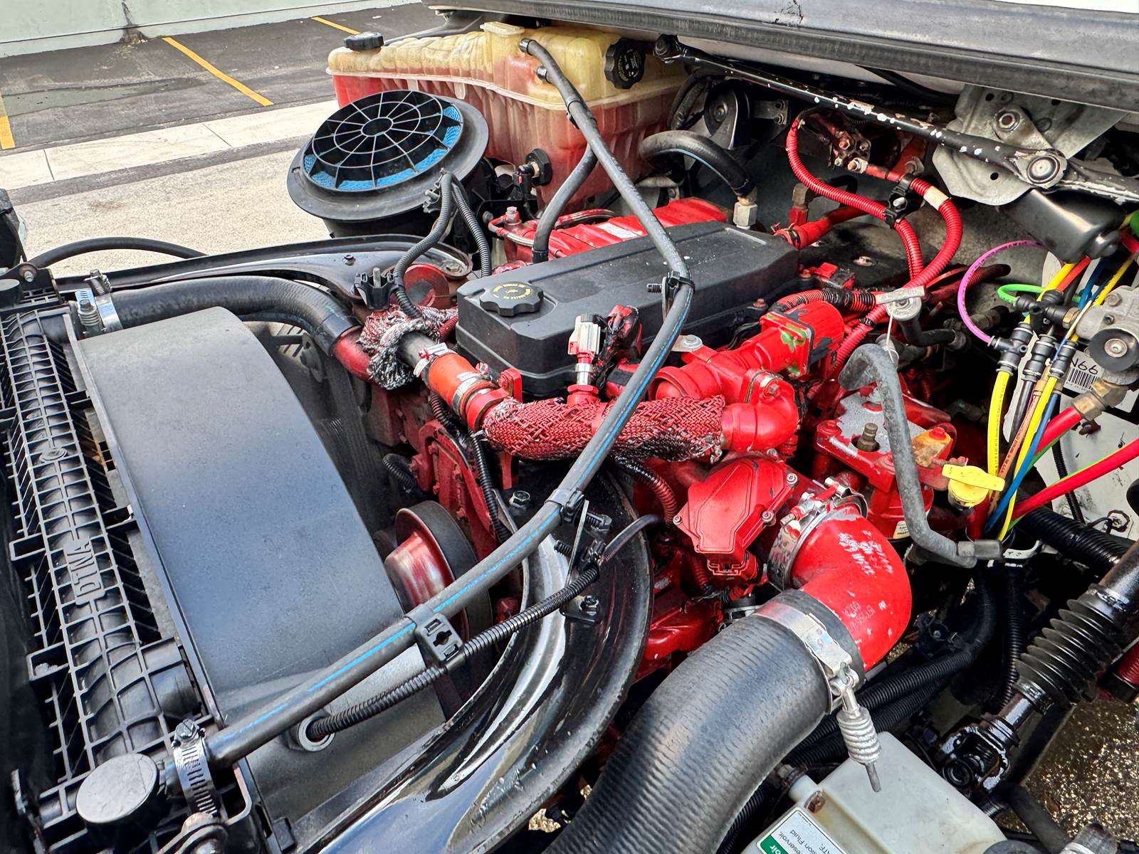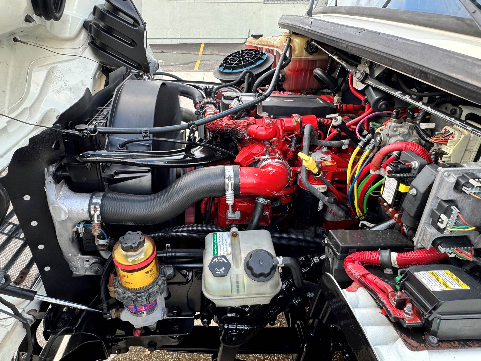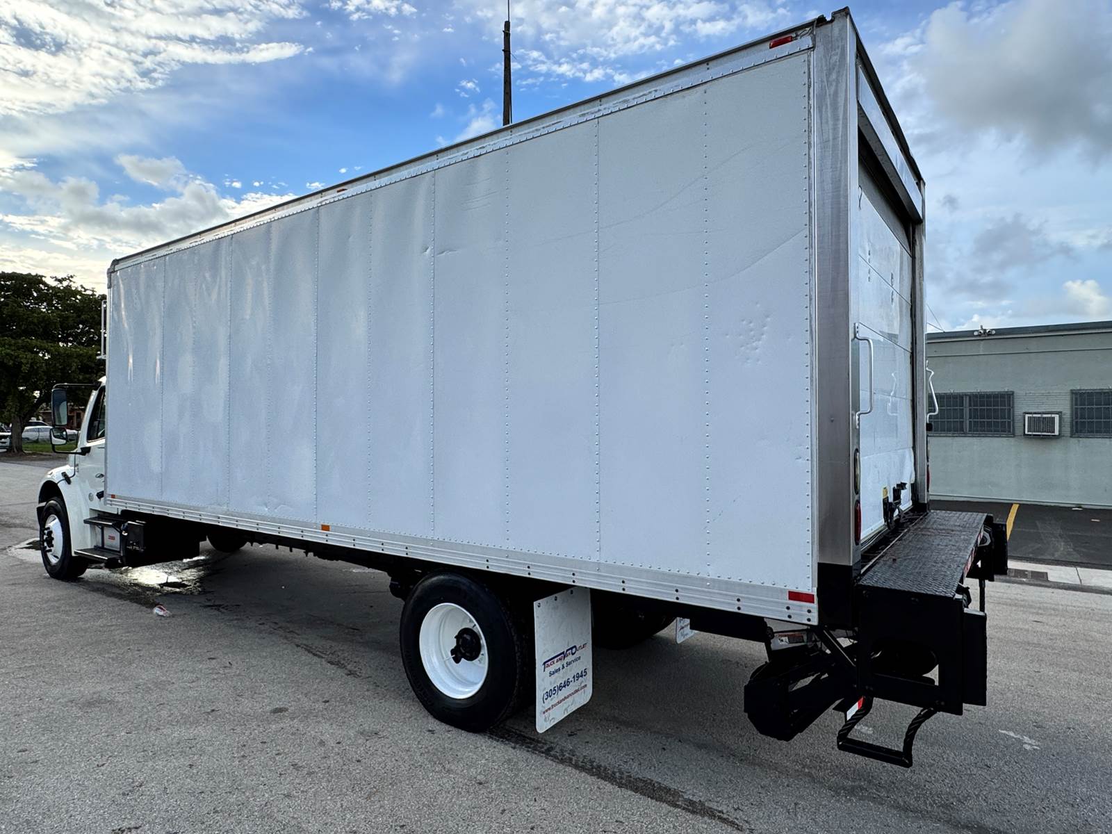 The truck is fitted with a 24-foot insulated aluminum body manufactured by A.M. Haire Manufacturing & Service Corp, designed for long-lasting temperature retention. It includes a roll-up rear door, curbside swing door for quick access, and a 3,000 lb aluminum tuckaway liftgate for efficient loading and unloading. Inside, the body measures 96” high by 102” wide, providing generous cargo volume.