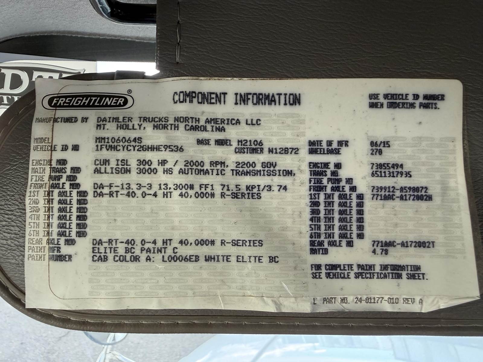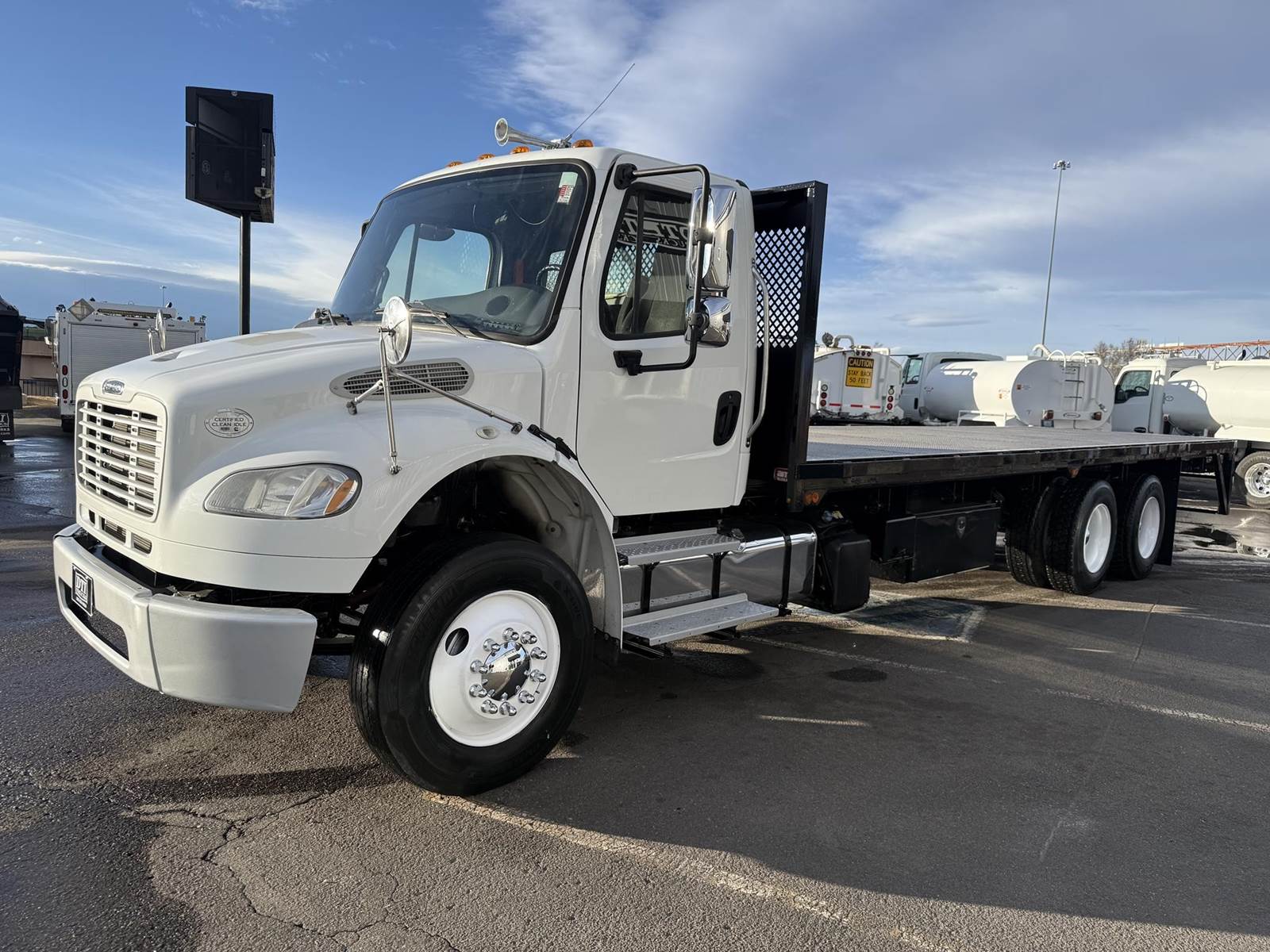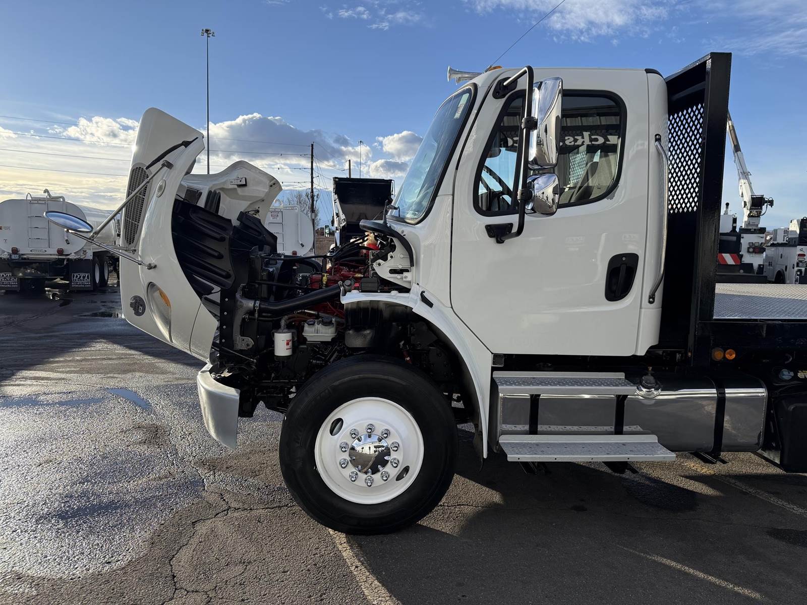 2016 Freightliner M2-106 Tandem Axle 28’ Flatbed Truck, 8.9L Cummins ISL Diesel Engine, 300 HP, Exhaust Brake, Allison 3000 HS 6 Speed Automatic Transmission, ONLY 122,698 ECM Verified Miles & 3,507 ECM Verified Engine Hours, 53.3K GVWR (13.3K Steer Axle, 40K Combined Drive Axles), DOUBLE FRAME, 4.78 Axle Ratio, FULL LOCKERS, 270” Wheel Base, 204” CTA, Spring Suspension, 275/80R22.5 Steer Tires, 295/75R22.5 Drive Tires All Mounted On Steel Wheels, 80 Gallon Aluminum Diesel Fuel Tank, Block Heater, CARB Compliant, Air Brakes, Air Conditioning, Tilt & Telescoping Steering Wheel, Cruise Control, Bluetooth Radio, Back Up Camera, Power Windows & Locks, Power & Heated Mirrors, Air Ride Cab, Air Ride Driver Seat, Bench Passenger Seat, 28’ Steel Deck Flatbed, 102” Wide To Rub Rails, (2) 4’ Tool Boxes, (12) Sliding Strap Winches. This Freightliner Tandem Axle 28’ Flatbed Is Available At DTI Trucks In Denver, CO. Stock #18058D. Call Or Text Brent For More Information (303) > 598 > 1923
