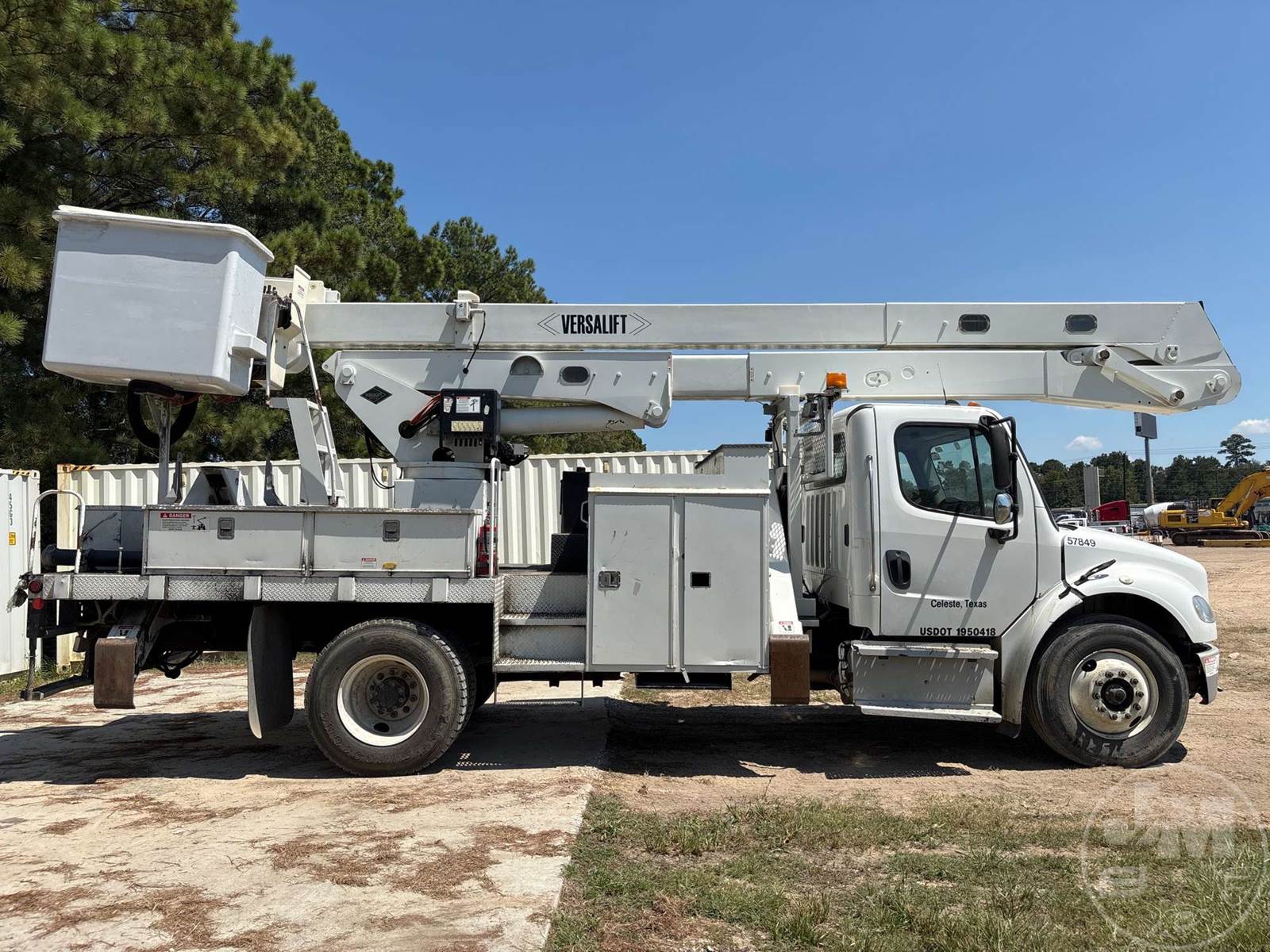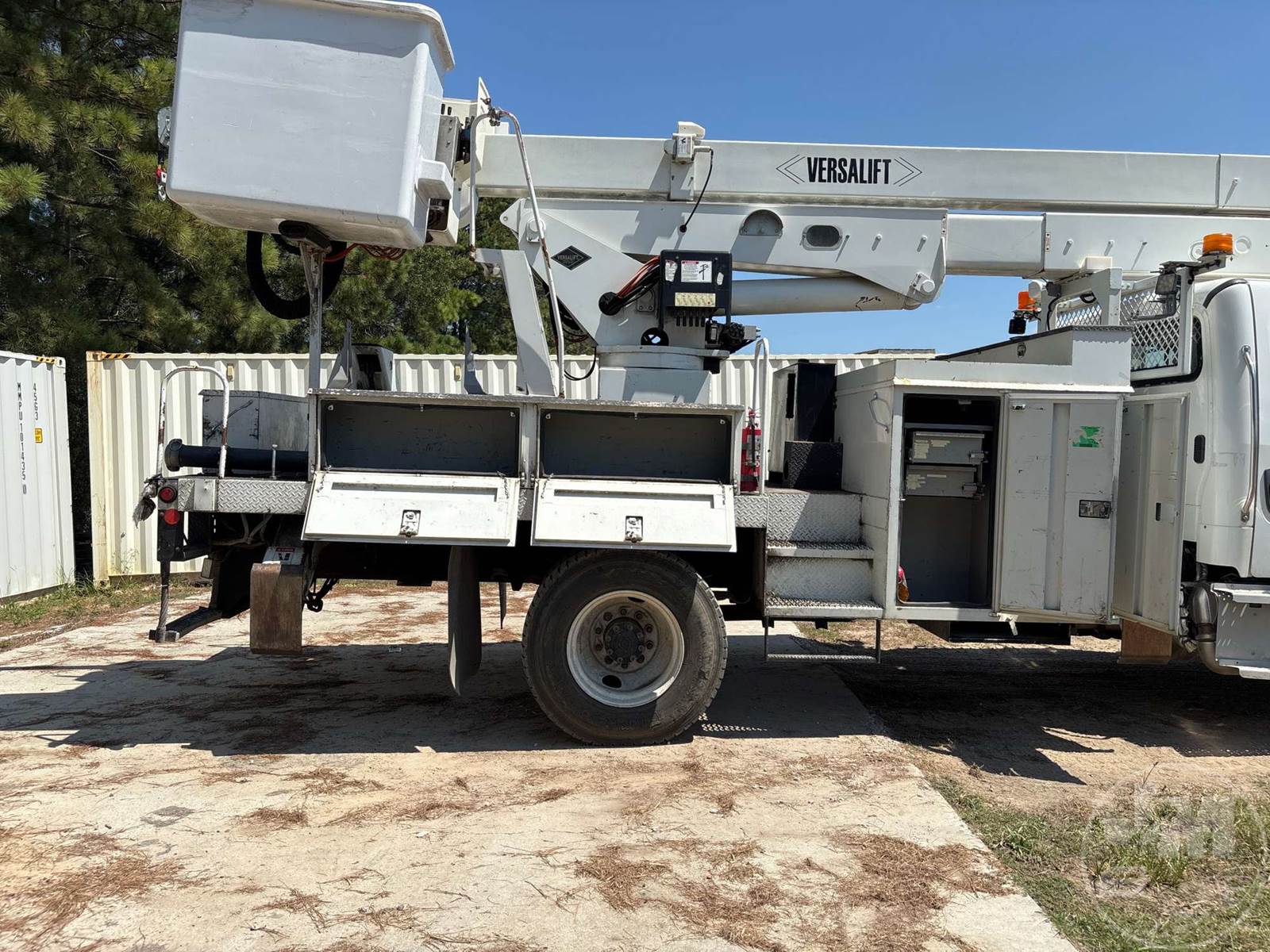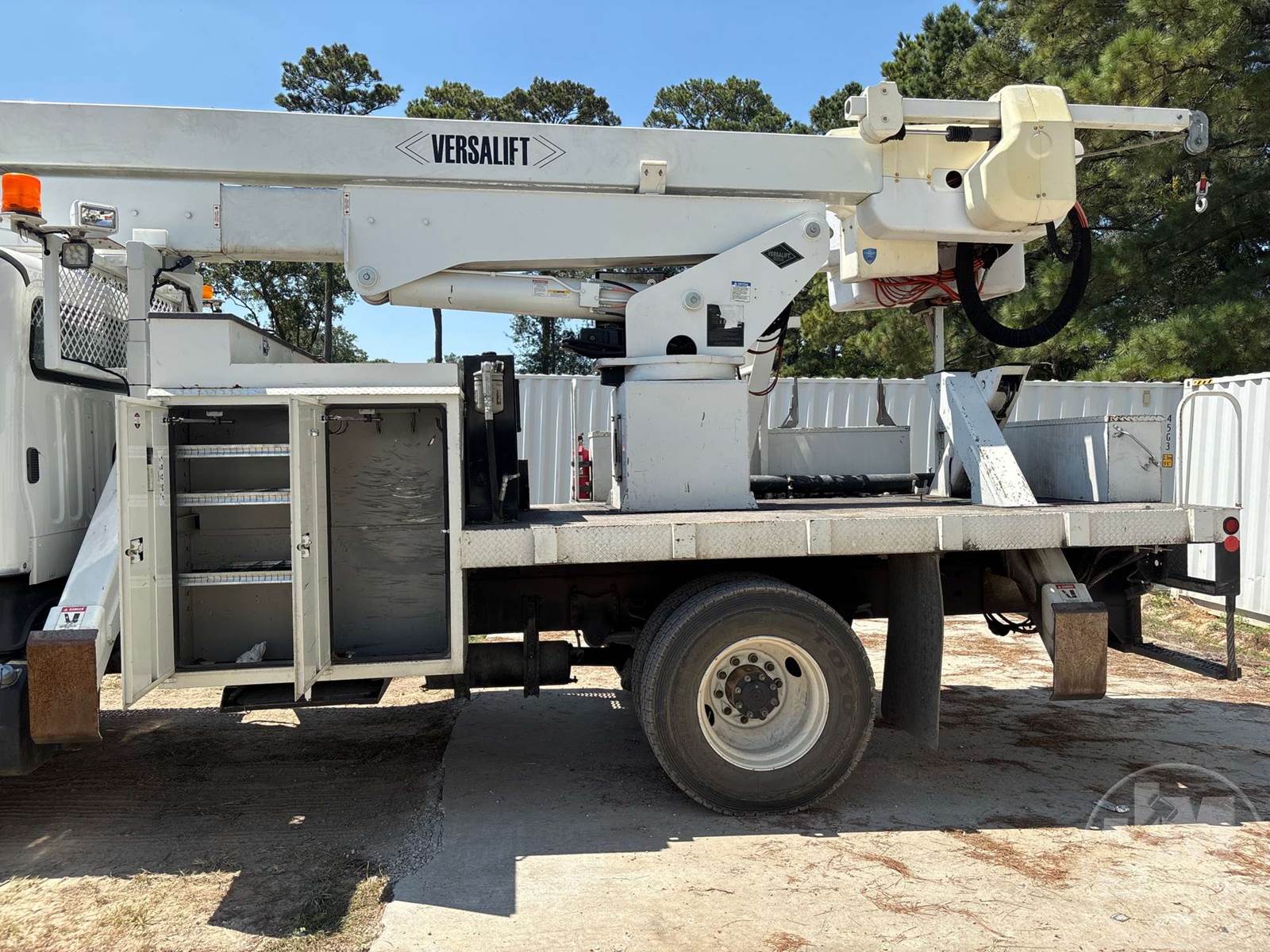 BUCKET TRUCK VERSALIFT, CUMMINS ISB 6 CYLINDER DIESEL, ALLISON, AUTOMATIC, SPRING SUSPENSION, 190 IN. WB, FLATBED BODY, MID MOUNT BOOM, TWO MAN BUCKET, 4 HYDRAULIC OUTRIGGERS, HOUR METER READS: 4773, ODOMETER READS: 54276, ***PTO WILL NOT ENGAGE***