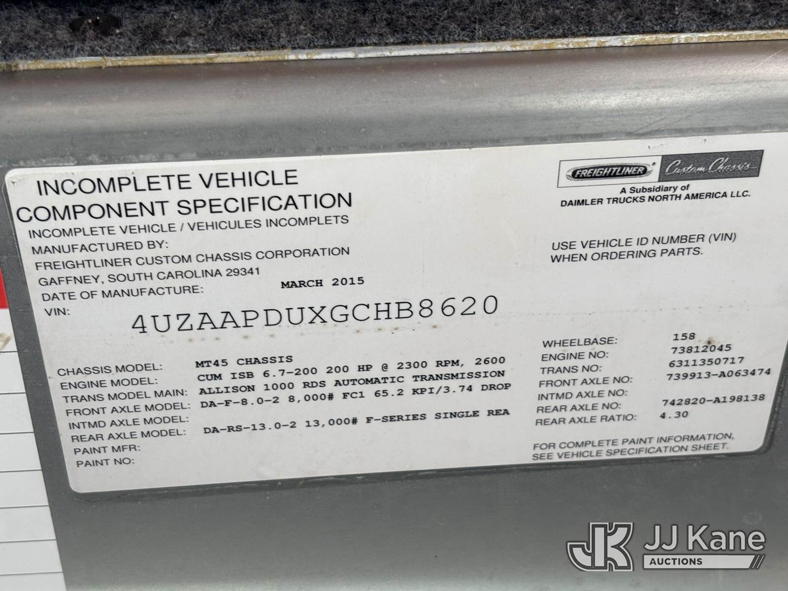 2016 Freightliner MT45 Step Van, 6.7L diesel, Auto, A/C, with Cummins/Onan Generator, Kubota Dsl. Arrowboard, (37,218 miles) (Runs & Moves, Check Engine Light On) This is a Titled Item NOTE: This unit is being sold AS IS/WHERE IS via Timed Auction and is located in Plymouth Meeting, PA. Inspection & preview days for this unit are the 2 business days prior to the first day of items closing for this auction, item is located at 1402 Conshohocken Rd Plymouth Meeting, PA 19462 and hours of operations are 8a-4p. For pre-sale questions, please contact Bruce Thomas @ (267) 887-0392 or bruce.thomas.jr@jjkane.com. (Buyer is responsible for removal. Assistance by consignor or JJ Kane Auctions is not assured.)