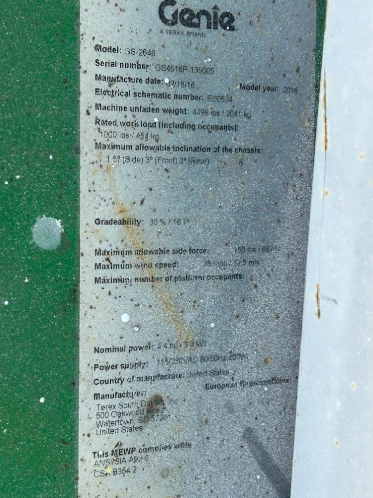 2016 GENIE GS2646 SCISSORLIFT