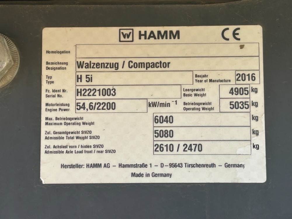 2016 HAMM H5I VIBRATORY SMOOTH DRUM ROLLER