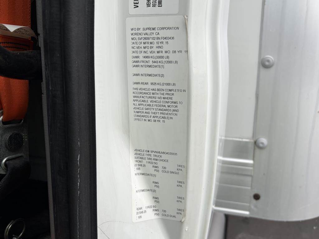 VIN: 5PVNV8JV8G4S55935 7.6L Turbo Diesel, Automatic, 33,300LB GVWR, A/C, Heat, AM/FM/CD, Cruise Control, Power Windows, Power Locks, DEF, Certified Clean Idle, Air/Hydraulic Brakes, Spring Suspension, Tire Size 22.5, 3,000LB Lift Gate Odometer Reading: 202,022