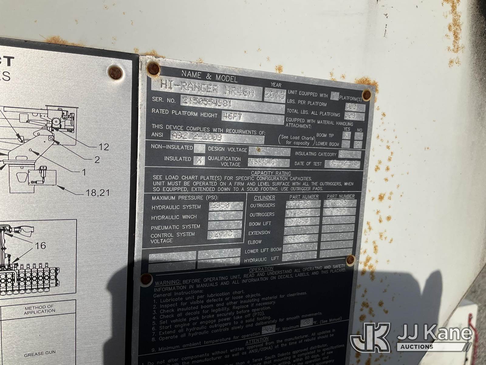 HiRanger HR46-M, 51 ft, Material Handling Bucket Truck s/n 2150554981, with single-man bucket & 4 hyd outriggers, rear mounted on 2016 Freightliner M2 Medium Duty Extended-Cab Utility Truck, Cummins 6.7L Auto, 4X2, diesel, A/C, (59,288 miles) (Runs, Moves & Upper Operates) (Hydraulic Line Burst During Inspection, *Do Not Engage PTO*) (Reads 7,526 hours) This is a Titled Item NOTE: This unit is being sold AS IS/WHERE IS via Timed Auction and is located in Shrewsbury, MA. Inspection & preview days for this unit are the 2 business days prior to the first day of items closing for this auction, item is located at 11 Fortune Blvd Shrewsbury, MA 01545 and hours of operations are 8a-4p. For pre-sale questions, please contact Rob Gifford @ (508) 864-4126. (Manuals provided in cab) (Buyer is responsible for removal. Assistance by consignor or JJ Kane Auctioneers is not assured.)