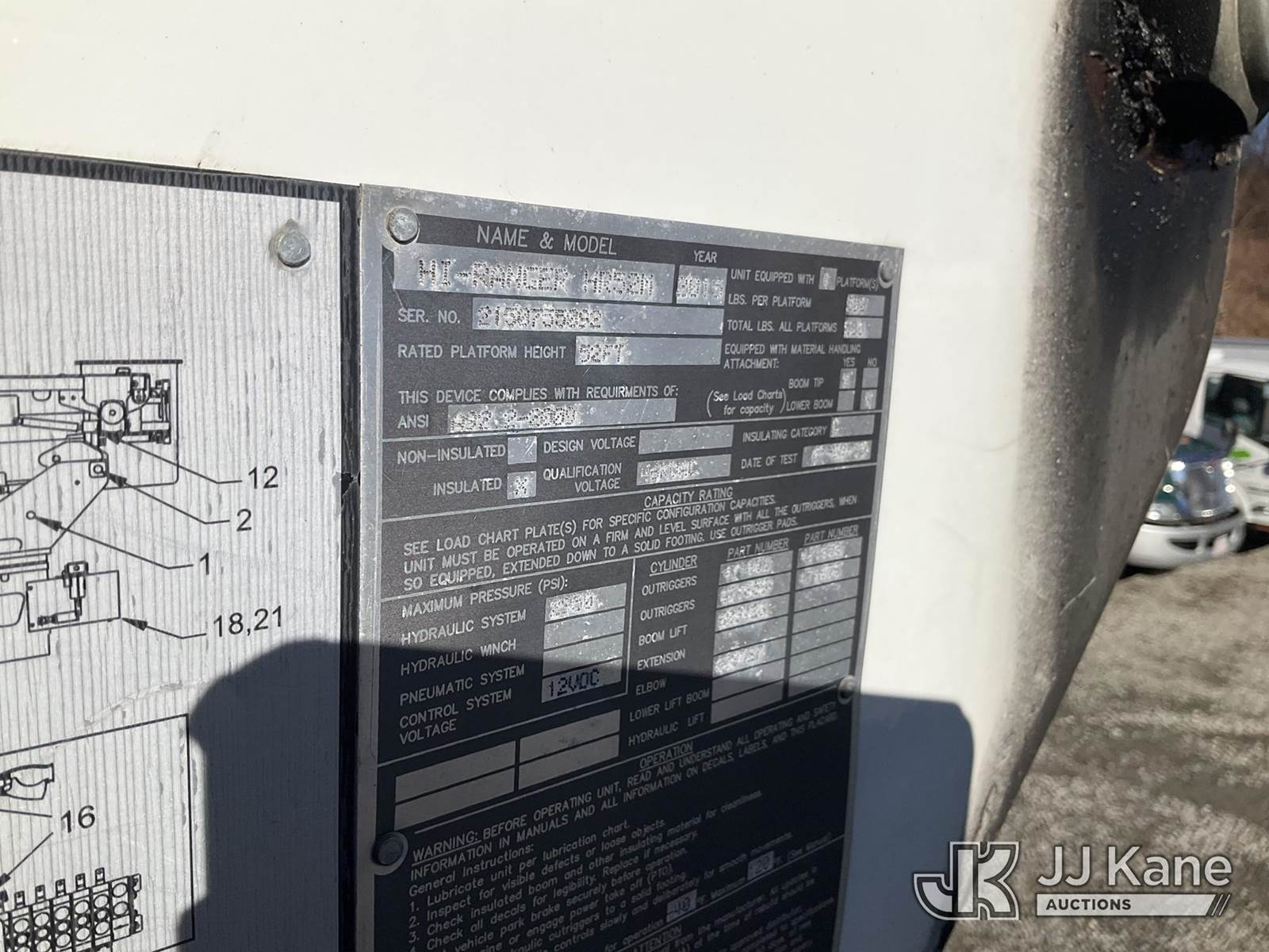 HiRanger HR52-M, 57 ft, Material Handling Bucket Truck s/n 2150755092, with single-man bucket & 4 hyd outriggers, rear mounted on 2016 Freightliner M2 Medium Duty Utility Truck, Cummins 6.7L Auto, 4X2, diesel, A/C, (59,838 miles) (Runs, Moves & Upper Operates) (Reads 6,036 hours) This is a Titled Item NOTE: This unit is being sold AS IS/WHERE IS via Timed Auction and is located in Shrewsbury, MA. Inspection & preview days for this unit are the 2 business days prior to the first day of items closing for this auction, item is located at 11 Fortune Blvd Shrewsbury, MA 01545 and hours of operations are 8a-4p. For pre-sale questions, please contact Rob Gifford @ (508) 864-4126. (Manuals provided in cab) (Buyer is responsible for removal. Assistance by consignor or JJ Kane Auctions is not assured.)