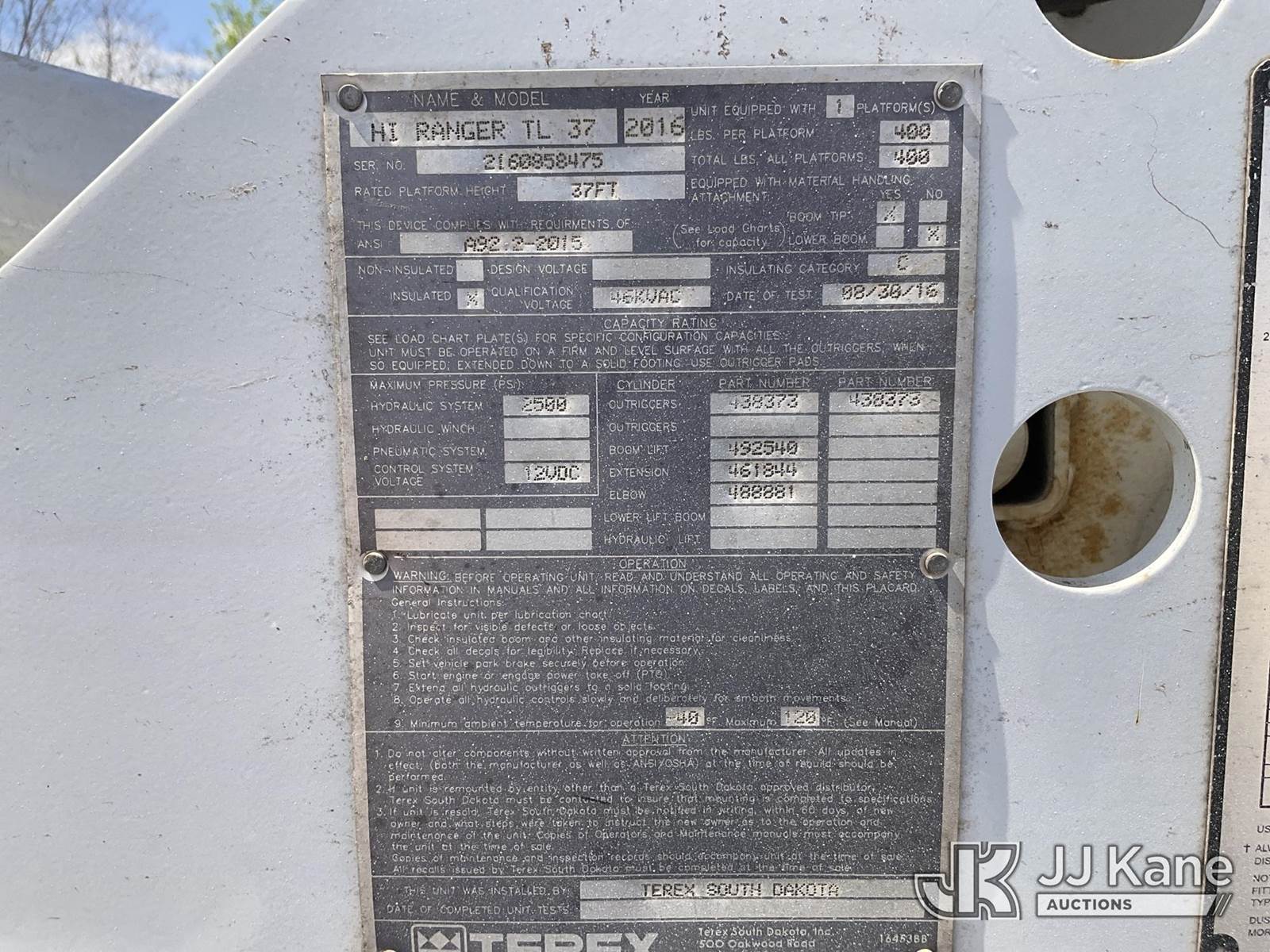 HiRanger TL37-MH, 42 ft, Articulating & Telescopic Material Handling Bucket Truck s/n 2160858475, with single man bucket, mounted behind cab on 2016 Ford F-550 Service Truck, 6.7L diesel, 4WD, Auto, A/C, with brush guard bumper, (170,023 miles) (Runs, Moves & Upper Operates) (Check Engine Light On) (Seller States: Fuel Issue) This is a Titled Item NOTE: This unit is being sold AS IS/WHERE IS via Timed Auction and is located in Channelview, TX. For more information & removal arrangements please contact Charlie de Kanter @ 281-910-7147 (Missing manuals, See Auction Company for Manufacturers Information to obtain manuals) (Buyer is responsible for removal. Assistance by consignor or JJ Kane Auctions is not assured.)