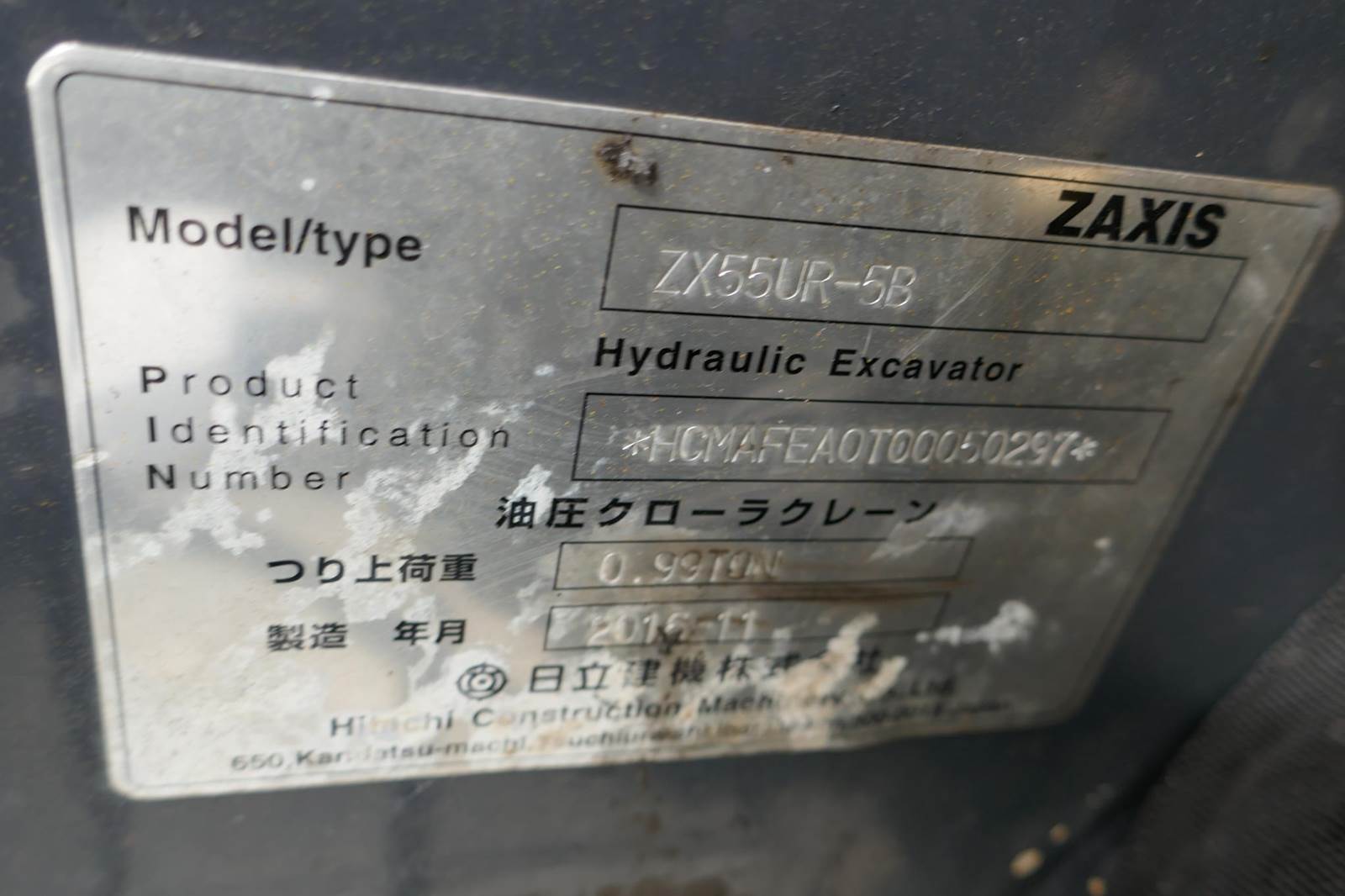 2017 Hitachi ZX55UR-5B Mini Excavator