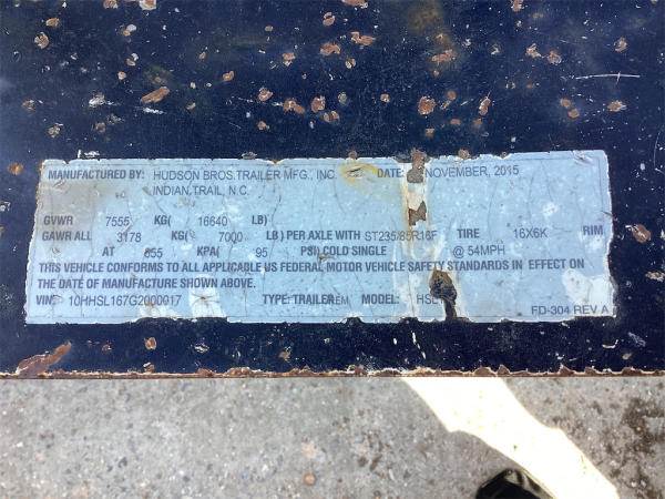 Approximately 17 FT Length, 82 IN Width FULL OPERATIONS NOT TESTED. RIGHT TIRE MISSING GREASE CAP. Location: Pisgah Forest, NC Serial: 10HHSL167G2000017 - For More Information contact: Nick Greiner at 515-720-0809