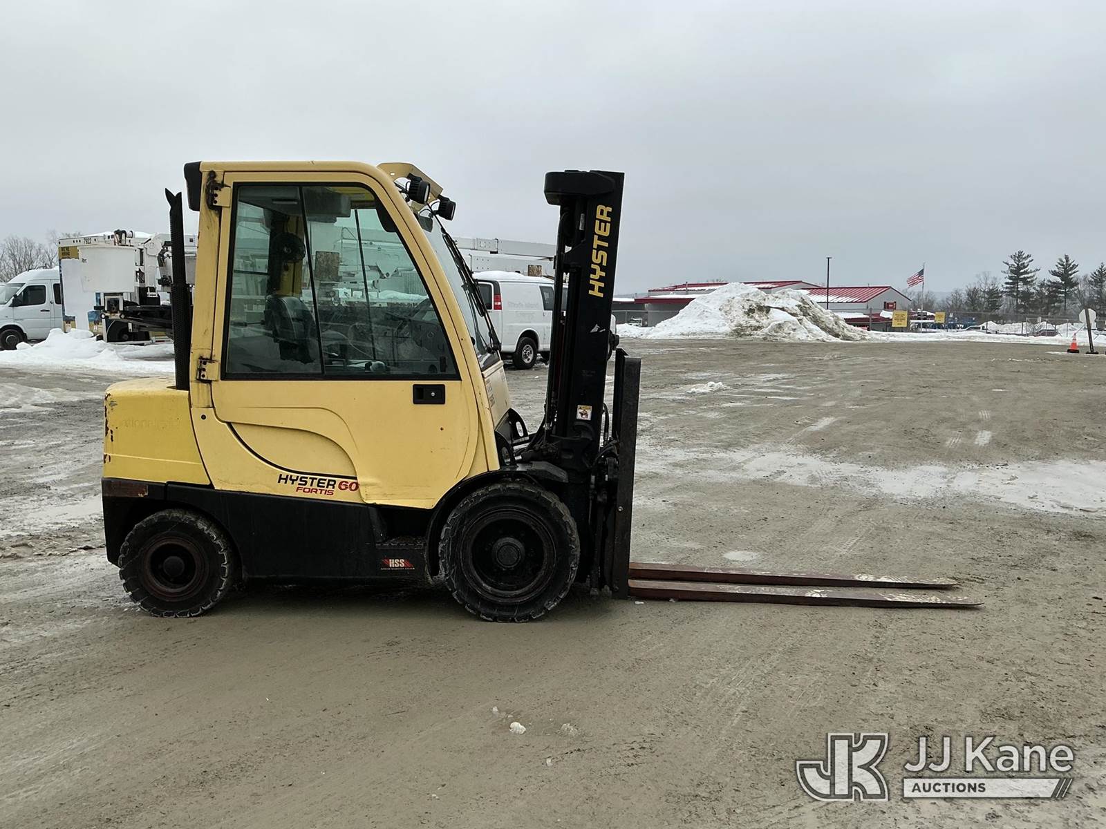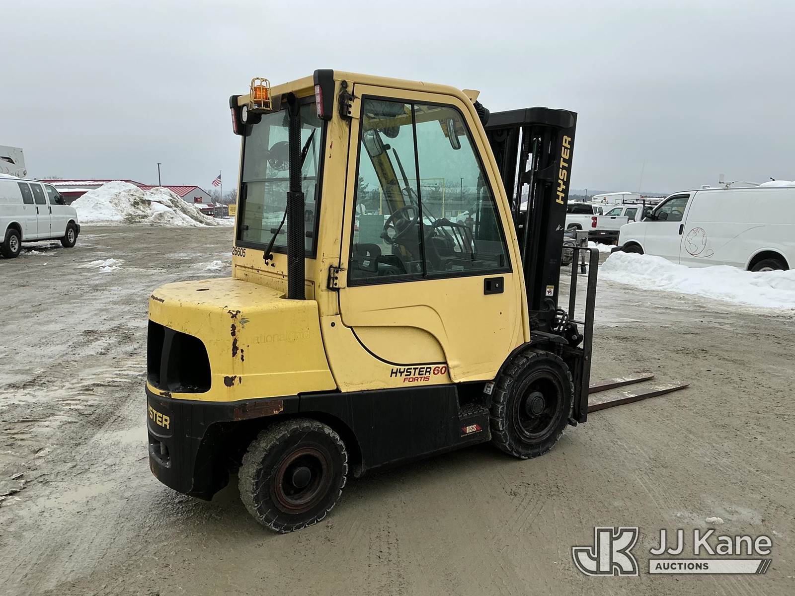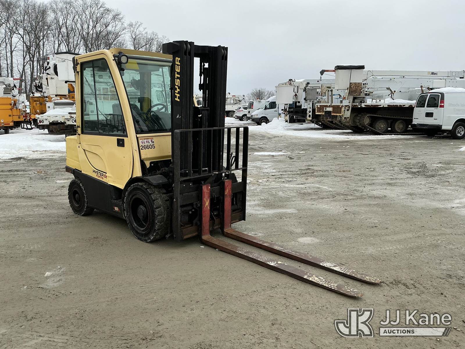 2016 Hyster H60FT Rubber Tired Forklift, s/n P177V06785P, Kubota diesel, Shuttle, with 4,900 LB capacity, 181.9 in. max lift height, 6 ft. forks & EROPS, (Runs, Moves & Operates) (Reads 708 hours) NOTE: This unit is being sold AS IS/WHERE IS via Timed Auction and is located in Shrewsbury, MA. Inspection & preview days for this unit are the 2 business days prior to the first day of items closing for this auction, item is located at 11 Fortune Blvd Shrewsbury, MA 01545 and hours of operations are 8a-4p. For pre-sale questions, please contact Rob Gifford @ (508) 864-4126. (Buyer is responsible for removal. Assistance by consignor or JJ Kane Auctions is not assured.)