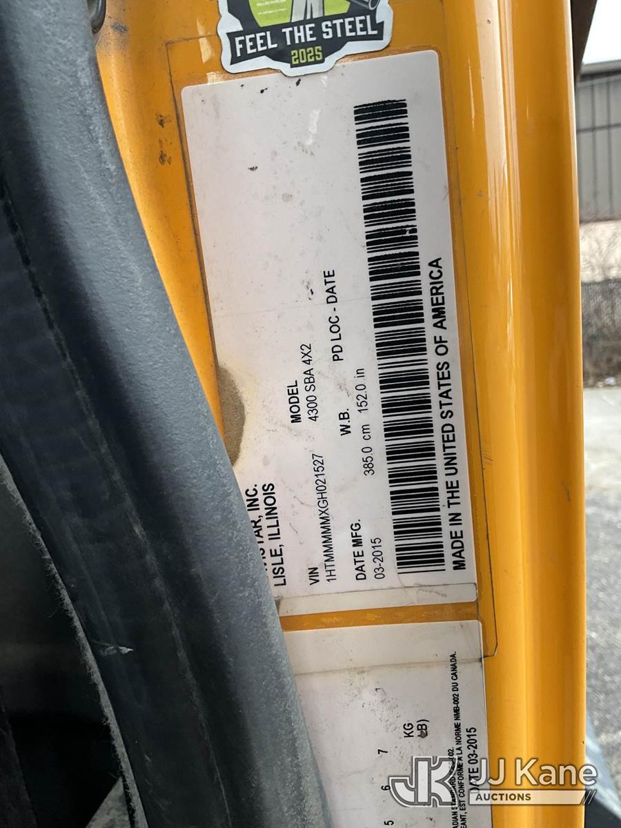 2016 International DuraStar 4300 Dump Truck, Cummins 6.7L diesel, Auto, 4X2, A/C, with 5-7 yard body, (100,024 miles) (Runs, Moves, Operates) (Seller states Fuel Pressure Issues) (Reads 8,415 hours) This is a Titled Item NOTE: This unit is being sold AS IS/WHERE IS via Timed Auction and is located in Romulus, MI. For more information & removal arrangements please contact Steve Morse @ 517-983-9026. (Buyer is responsible for removal. Assistance by consignor or JJ Kane Auctions is not assured.)