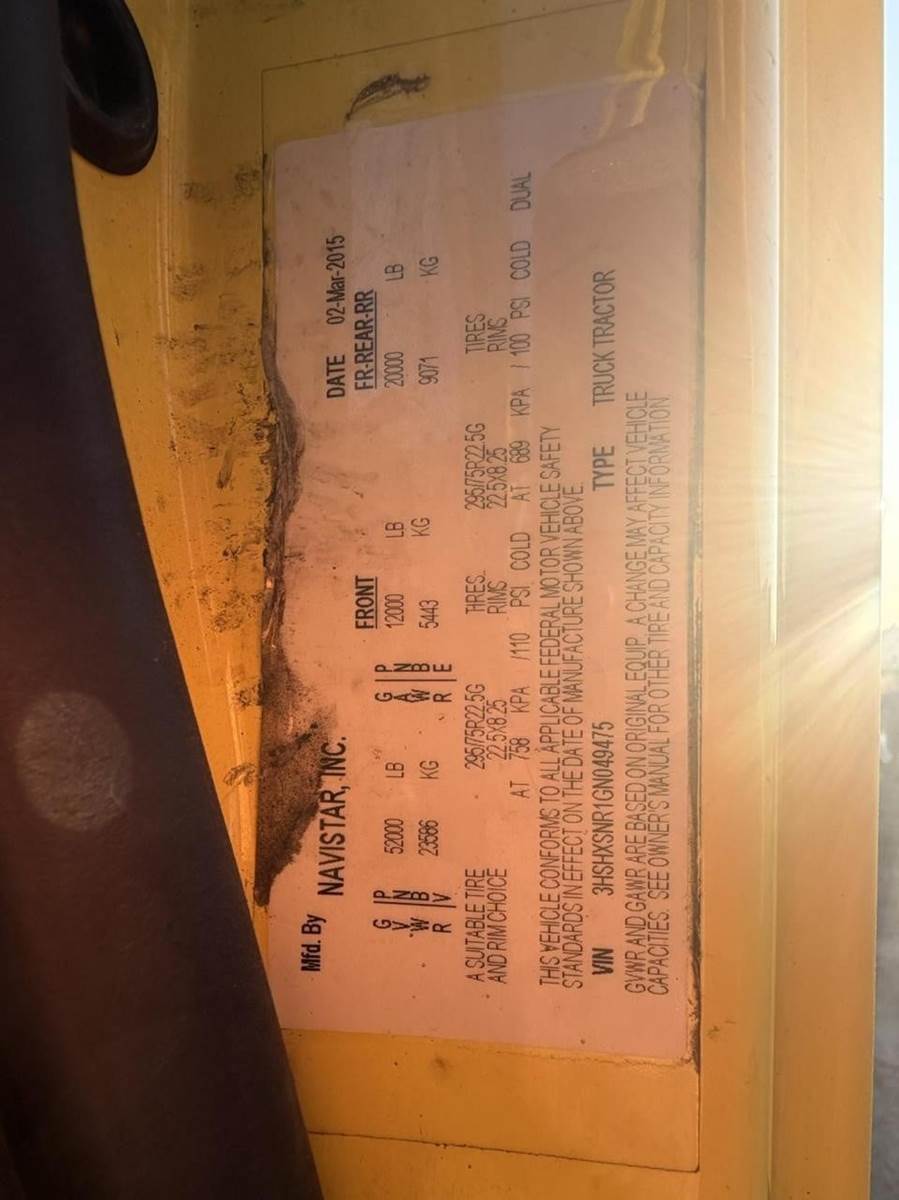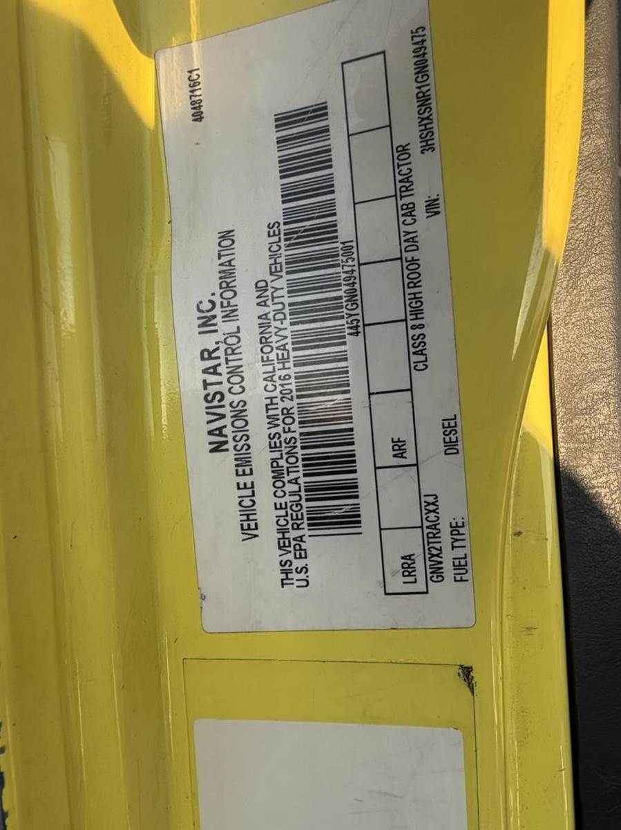 2016 International Transtar 8600 Tandem Axle Day Cab, International N13 410HP Engine, Manual 10 Spd Fuller FR14210B Transmission, 52,000 GVW, 12,000# MFS-12 Front Axle, 40,000# Meritor MR2014X Rear Axle, 2.47 Ratio, 173" Wheelbase (CA/CT-112" EOF-164"), Front Tires: 295/75R22.5 (10/32) - Rear Tires: 295/80R22.5 (13/32), Steel Wheels, Aluminum 70/70 Fuel Tanks, Air Brakes 50%, AC, Cruise, Engine Brake, Air Slide 5th-Wheel, Power Steering, Tilting, Air Ride/Fixed Seats
