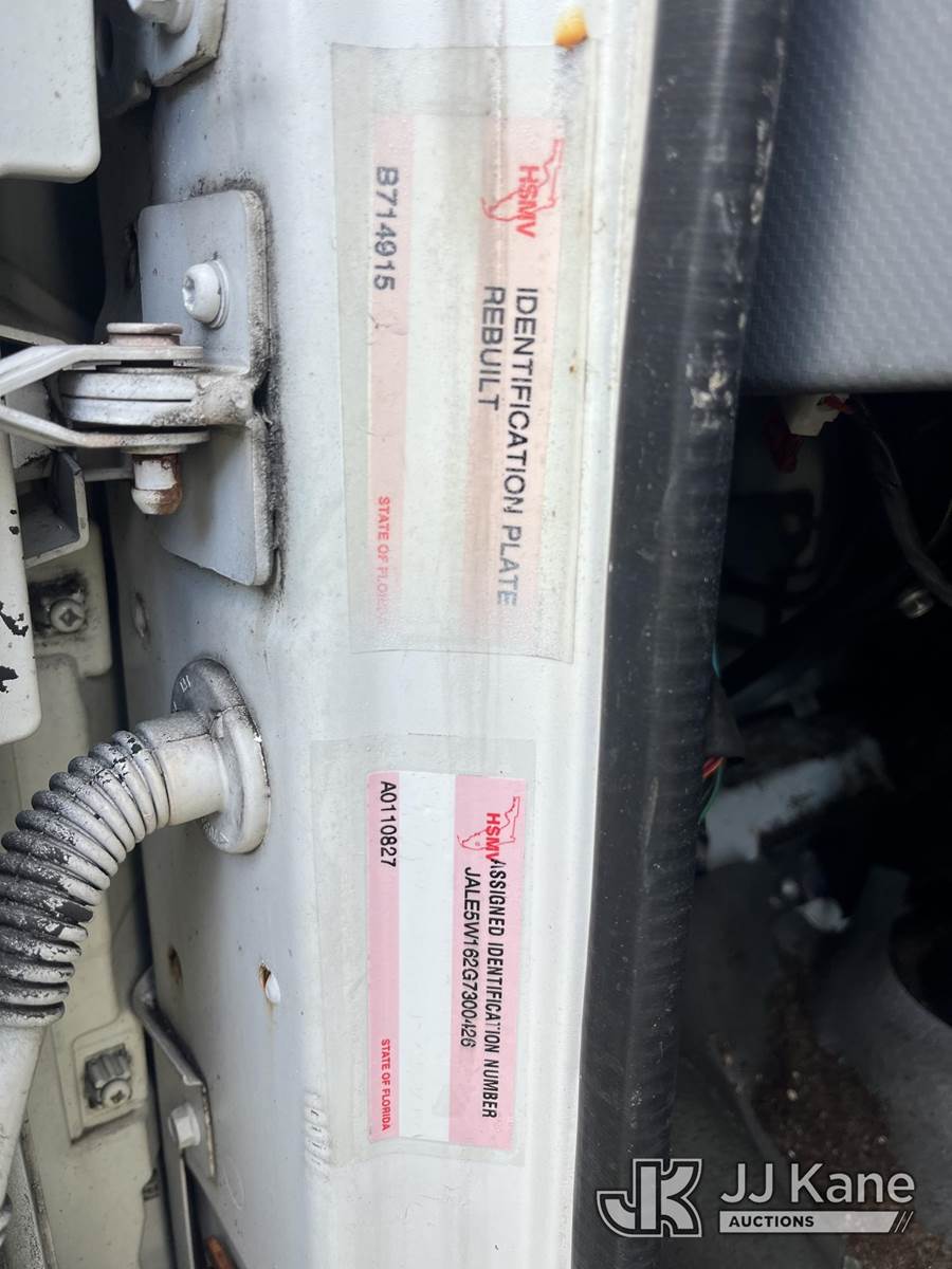 2016 Isuzu NQR Van Body Truck, 5.2L L6 diesel, Auto, 4X2, (74,546 miles) True Mileage Unknown State of FL Unit (New VIN Sticker Added Rebuilt Plate) (Not Running, Condition Unknown) (Paint Damage, Driveshaft Disconnected, Body Damage, Engine Light On)(FL Residents Purchasing Titled Items - tax, title & registration fees will be collected at the maximum rate of $400.00 under 25,999 and $800.00 for Over 26,000 and $250.00 trailers - Proof of insurance is mandatory; Out of State Residents Purchasing Title Items - tax will be collected based upon your state rate.) (Branded Title - Rebuilt Vehicle/Total Loss) This is a Titled Item NOTE: This unit is being sold AS IS/WHERE IS via Timed Auction and is located in Thonotosassa, FL. Inspection & preview days for this unit are the 2 business days prior to the first day of items closing for this auction, item is located at 11720 N US 301 Thonotosassa, Fl 33592 and hours of operations are 8a-4p. For pre-sale questions, please contact Office Staff @ (813) 986-2485. (Buyer is responsible for removal. Assistance by consignor or JJ Kane Auctions is not assured.)