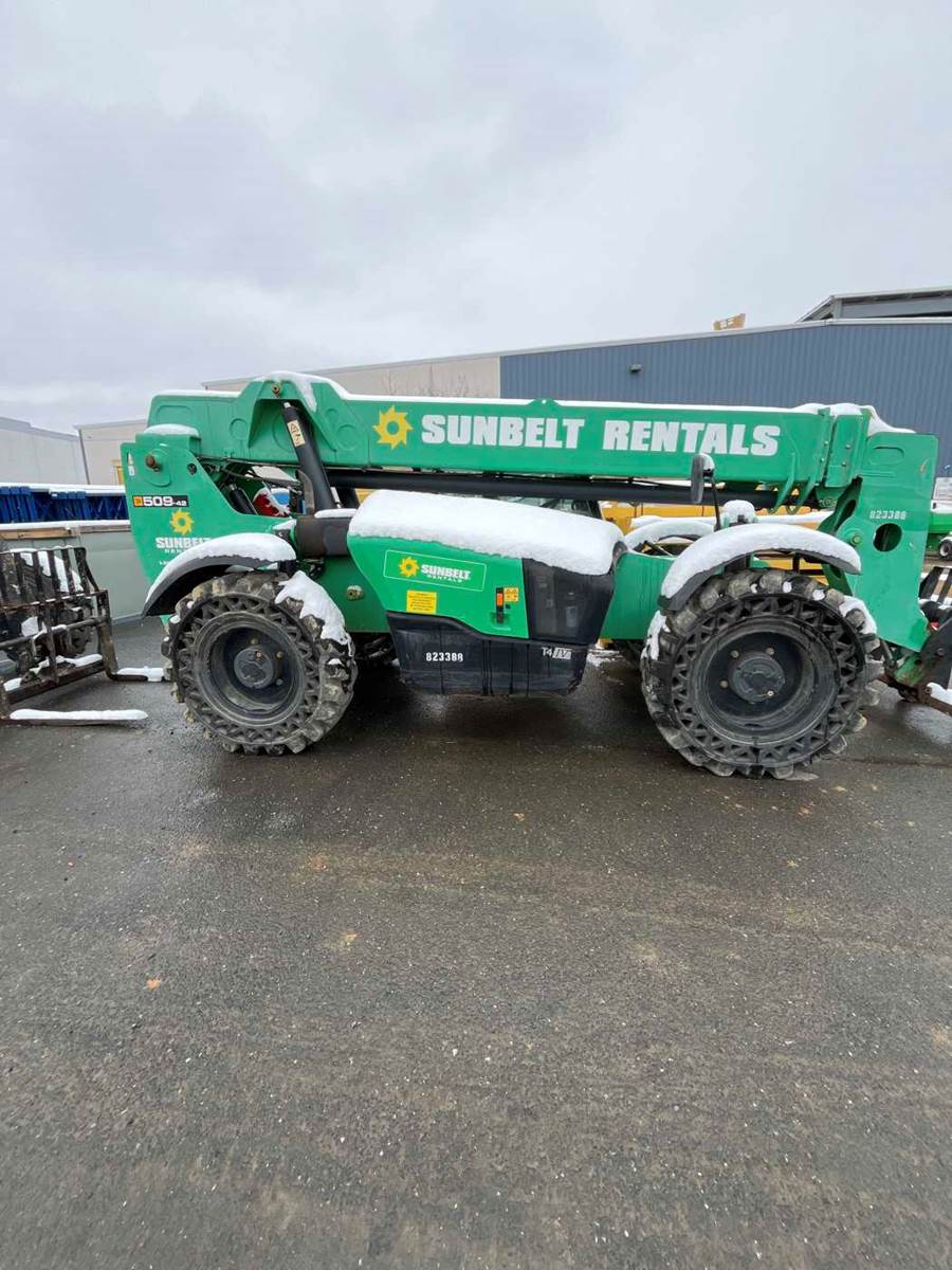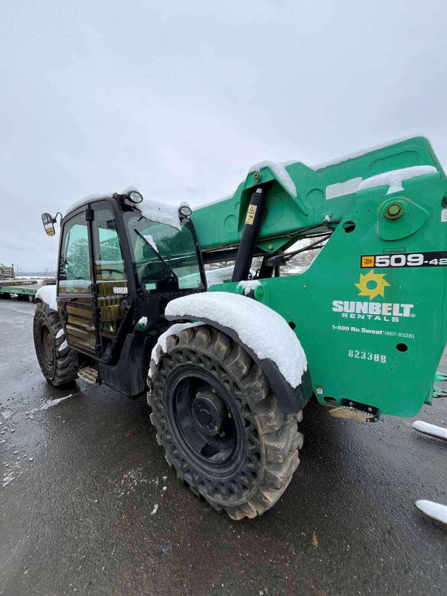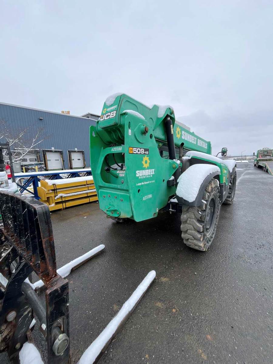 Brand/model: JCB 509-42 Year: 2016 Hours: 3,720 Reach: 42' Cab: Enclosed with heat Capacity: 9,000 lbs Tires: Solid Drive type: 4WD Power: Diesel Other: Crab steering, Frame levelling, Auxiliary hydraulics SKU #: LL26-036