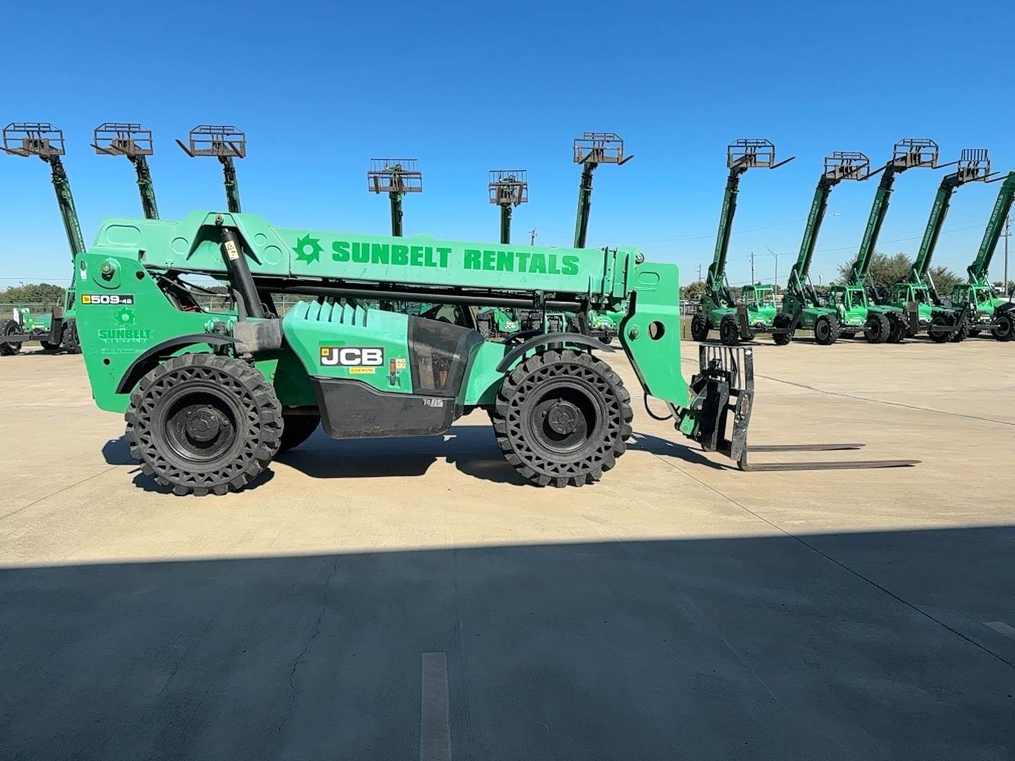 Brand/model: JCB 509-42, Year: 2017, Hours: 4,345, Reach: 42', Cab: Enclosed, Capacity: 9,000 lbs, Tires: Foam, Drive type: 4WD,...