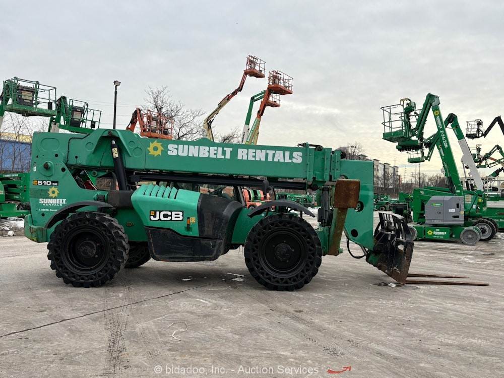 2016 JCB 510-56 56’ 10,000 lbs Telescopic Reach Forklift Cab Telehandler bidadoo