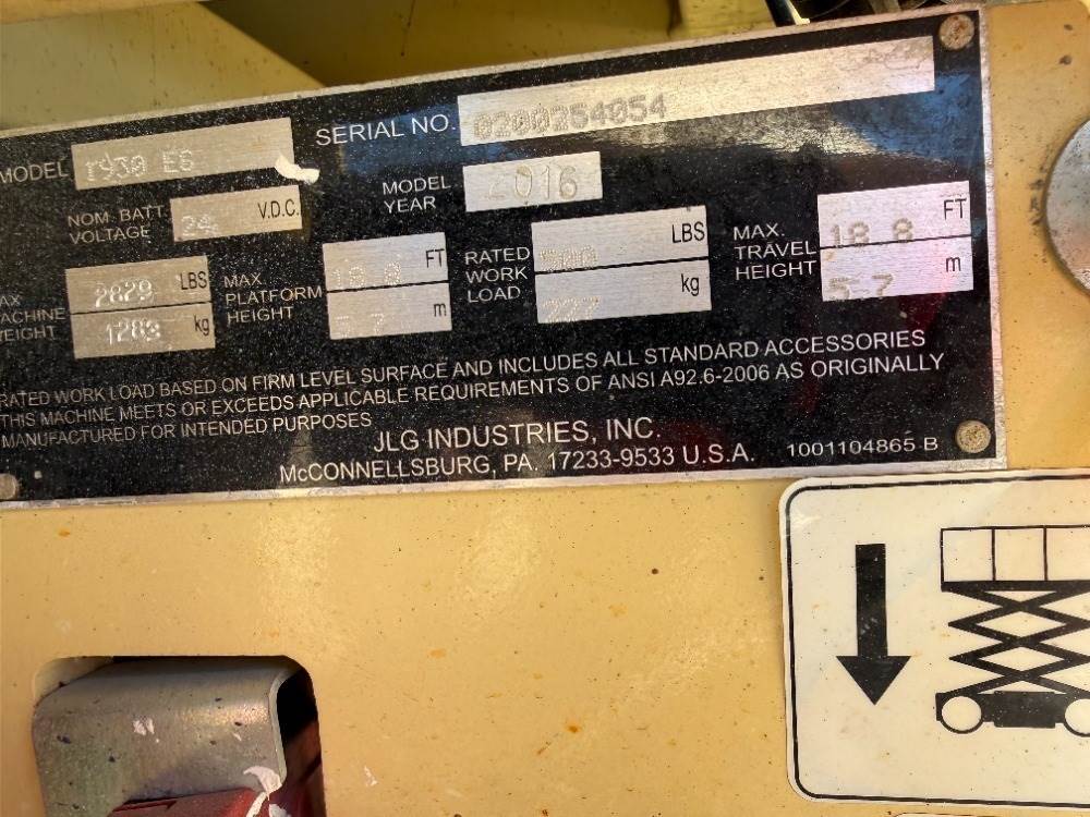 2016 JLG 1930ES SCISSORLIFT --(LOCATED IN MADERA, CA)--