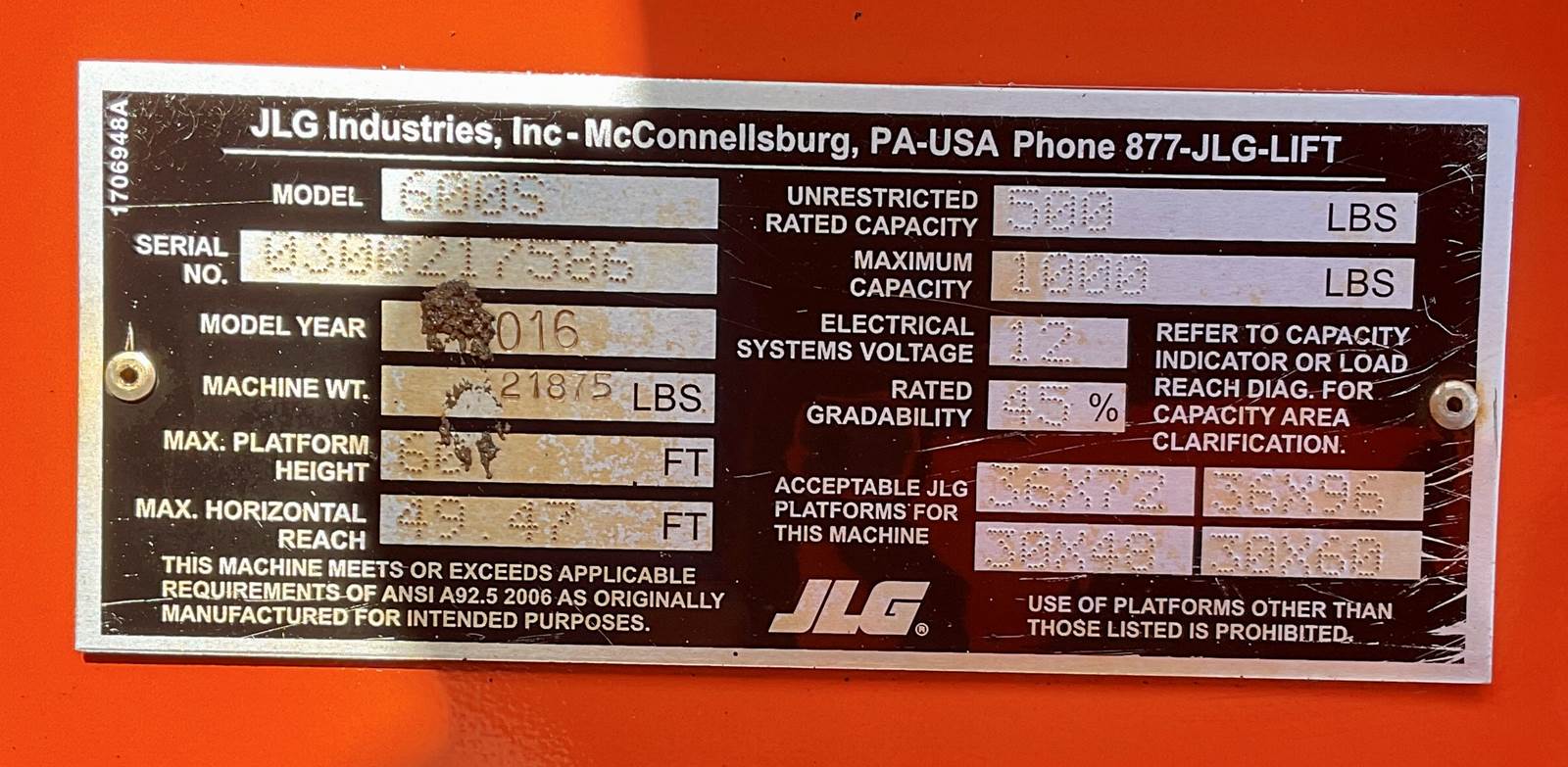60 ft platform height, 66 ft working height