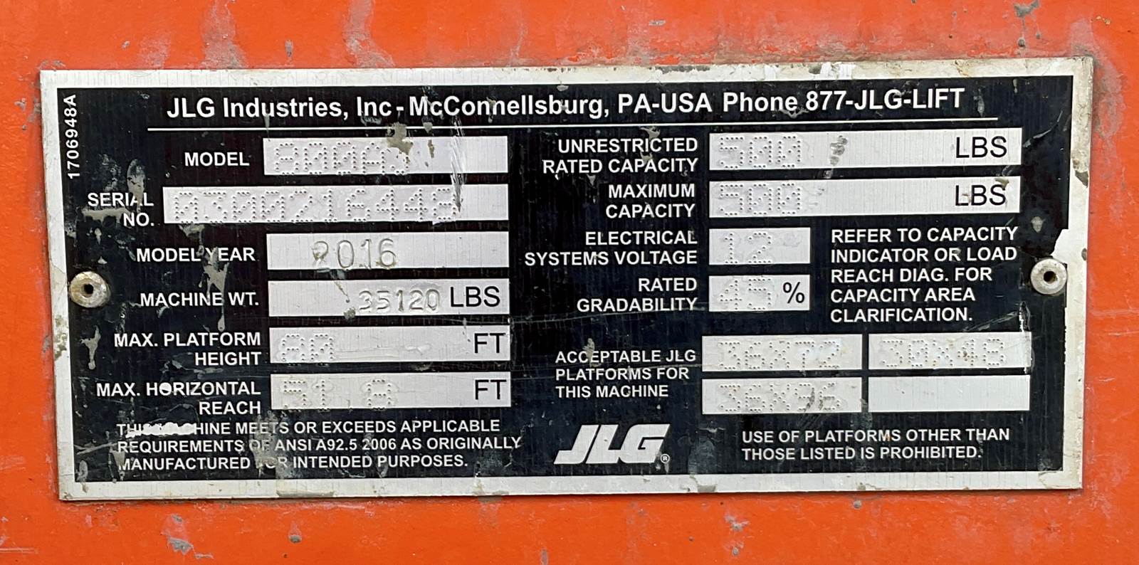 Powered by a dependable diesel engine and built on a rugged chassis, this boom lift delivers strong gradeability and all-terrain capability while maintaining smooth, responsive controls. Its articulating design allows operators to reach up, over, and around structures with confidence, reducing repositioning time and increasing productivity. The spacious platform provides ample room for tools and materials, making the 2016 JLG 800AJ a proven solution for high-reach applications.