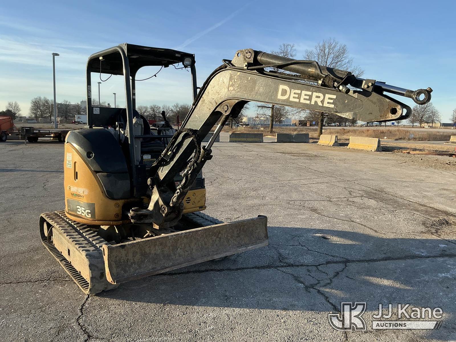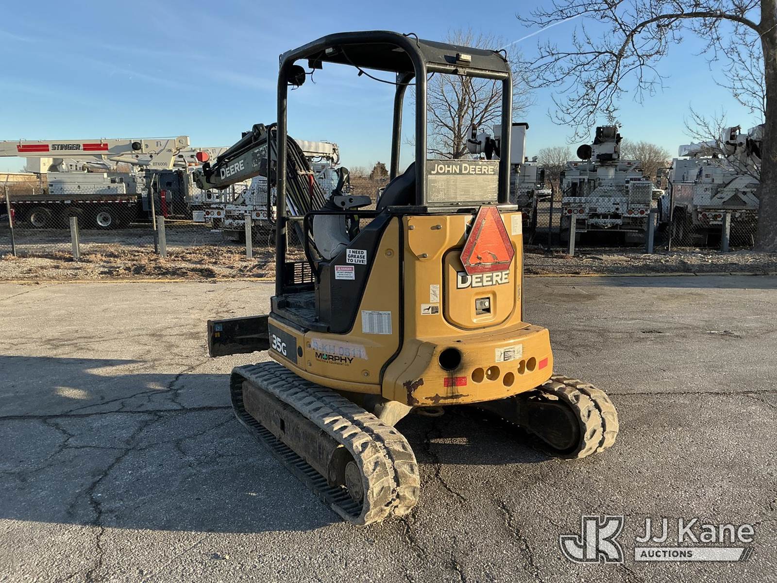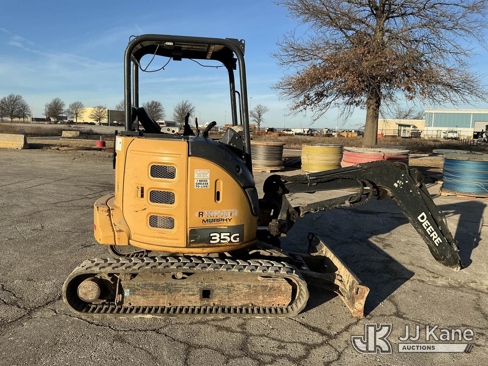 2016 John Deere 35G Mini Hydraulic Excavator, s/n 1FF035GXPGK276762, J.D. diesel, Hydraulic Driven, with Rops, Rubber Tracks, Back Fill Blade, Auxiliary Hydraulics, (Runs) ( Right Track Drive Does No Move) Missing Lower Arm & Bucket) (Reads 5,940 hours) NOTE: This unit is being sold AS IS/WHERE IS via Timed Auction and is located in Kansas City, MO. Inspection & preview days for this unit are the 2 business days prior to the first day of items closing for this auction, item is located at 962 Tel Aviv Ave Kansas City, MO 64153 and hours of operations are 8a-4p. For pre-sale questions or to schedule an inspection, please contact Ricky McPherson @ 816-610-2250. (Buyer is responsible for removal. Assistance by consignor or JJ Kane Auctions is not assured.)