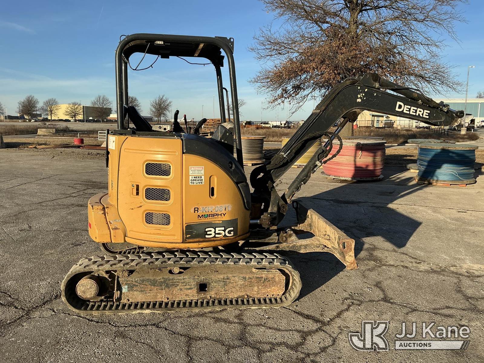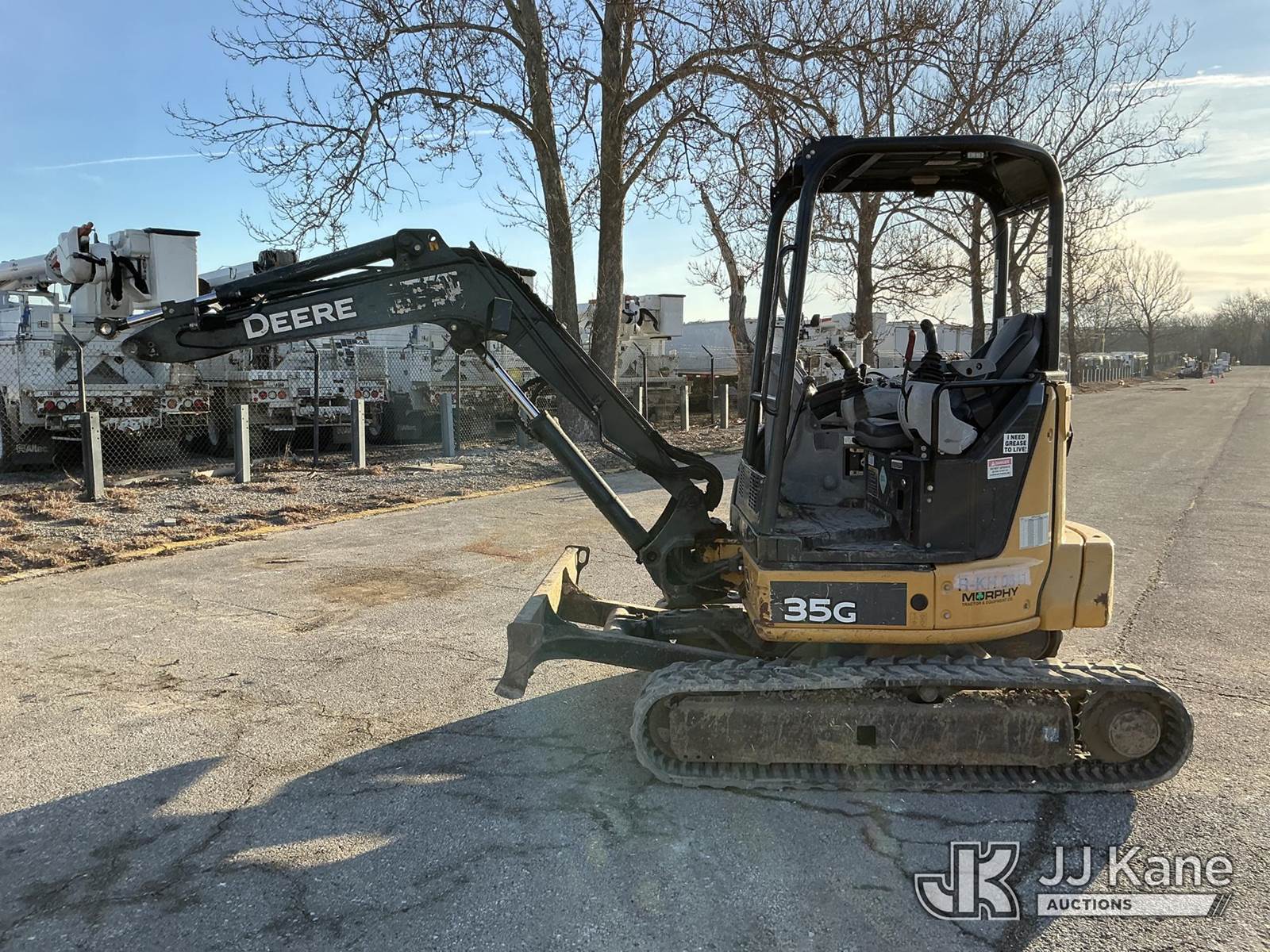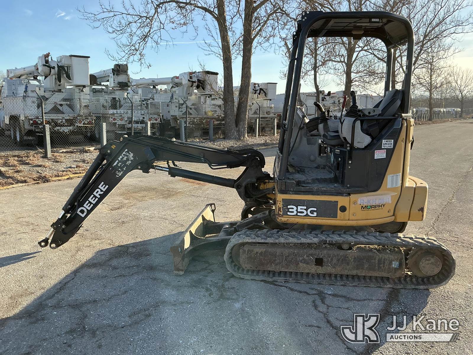 2016 John Deere 35G Mini Hydraulic Excavator, s/n 1FF035GXPGK276762, J.D. diesel, Hydraulic Driven, with Rops, Rubber Tracks, Back Fill Blade, Auxiliary Hydraulics, (Runs) ( Right Track Drive Does No Move) Missing Lower Arm & Bucket) (Reads 5,940 hours) NOTE: This unit is being sold AS IS/WHERE IS via Timed Auction and is located in Kansas City, MO. Inspection & preview days for this unit are the 2 business days prior to the first day of items closing for this auction, item is located at 962 Tel Aviv Ave Kansas City, MO 64153 and hours of operations are 8a-4p. For pre-sale questions or to schedule an inspection, please contact Ricky McPherson @ 816-610-2250. (Buyer is responsible for removal. Assistance by consignor or JJ Kane Auctions is not assured.)