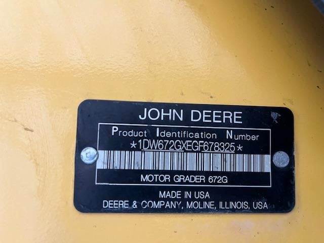 * 2016 Deere 672G Motor Grader