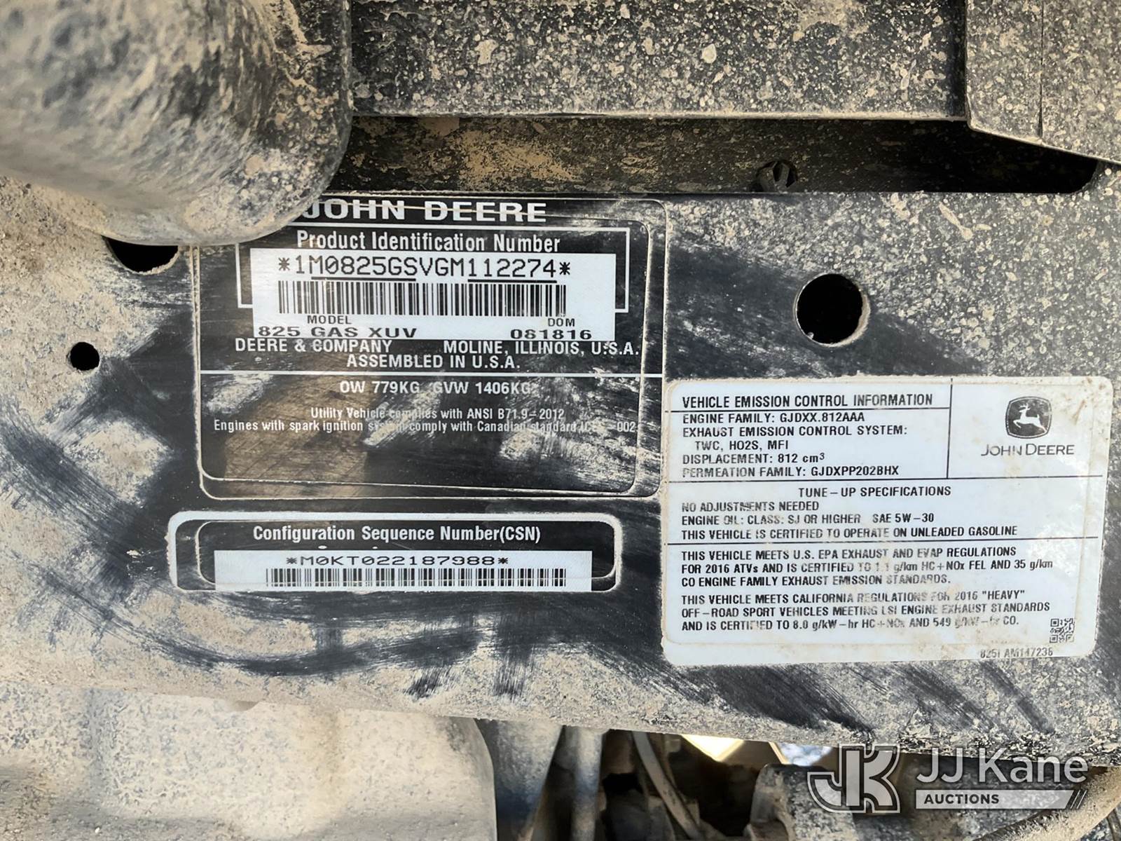 2016 John Deere Gator 825I Utility Cart, John Deere Auto, 4wd, Gas, with ROPS, (5,528 miles) JOHN DEERE 825I GATOR UTILITY CART (Runs & Moves) (Reads 1,888 hours) This is a Titled Item NOTE: This unit is being sold AS IS/WHERE IS via Timed Auction and is located in Las Vegas, NV. Inspection & preview days for this unit are the 2 business days prior to the first day of items closing for this auction, item is located at 14655 Grand Valley Pkwy Las Vegas, NV 89165 and hours of operations are 8a-4p. Titles executed exactly as bidder registered. Ensure your name and/or business name and address in JJ Kane and/or ProxiBid is correct before bidding. For pre-sale questions, please contact Office Staff @ (801) 519-0123 and provide sale date and lot number. Las Vegas Dealer License Number DLR000053086 / OHV000053094. (Buyer is responsible for removal. Assistance by consignor or JJ Kane Auctioneers is not assured.)