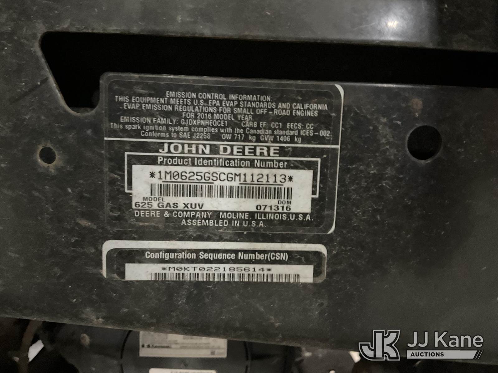2016 John Deere Gator XUV625G 4x4 All-Terrain Vehicle, s/n 1M0625GSCGM112113, Gas, Auto, with dump bed, (No Title) (Runs, Moves and Operates (refer to photos & video) own by local Power Company & Fleet Maintained.) (Reads 226 hours) NOTE: This unit is being sold AS IS/WHERE IS via Timed Auction and is located in Neenah, WI. Inspection & preview days for this unit are by appointment only; please contact us at contact@jjkane.com or 84-Go-JJKane for more details. (Buyer is responsible for removal. Assistance by consignor or JJ Kane Auctions is not assured.)
