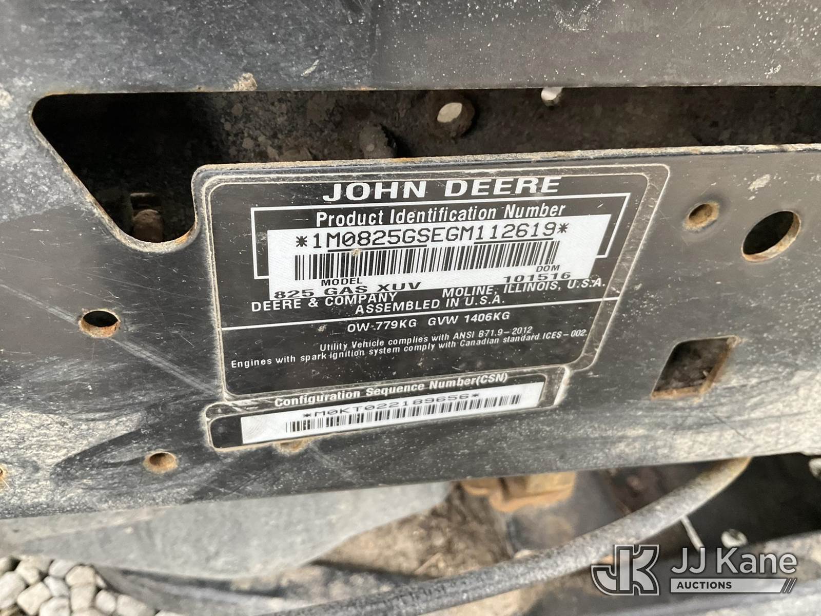 2016 John Deere Gator XUV825I All-Terrain Vehicle, s/n 1M0825GSEGM112619, gas gas, Auto, (2,620 miles) (No Title) (Not Running, Cranks, Condition Unknown, Missing Hood) NOTE: This unit is being sold AS IS/WHERE IS via Timed Auction and is located in Shrewsbury, MA. Inspection & preview days for this unit are the 2 business days prior to the first day of items closing for this auction, item is located at 11 Fortune Blvd Shrewsbury, MA 01545 and hours of operations are 8a-4p. For pre-sale questions, please contact Rob Gifford @ (508) 864-4126. (Buyer is responsible for removal. Assistance by consignor or JJ Kane Auctions is not assured.)