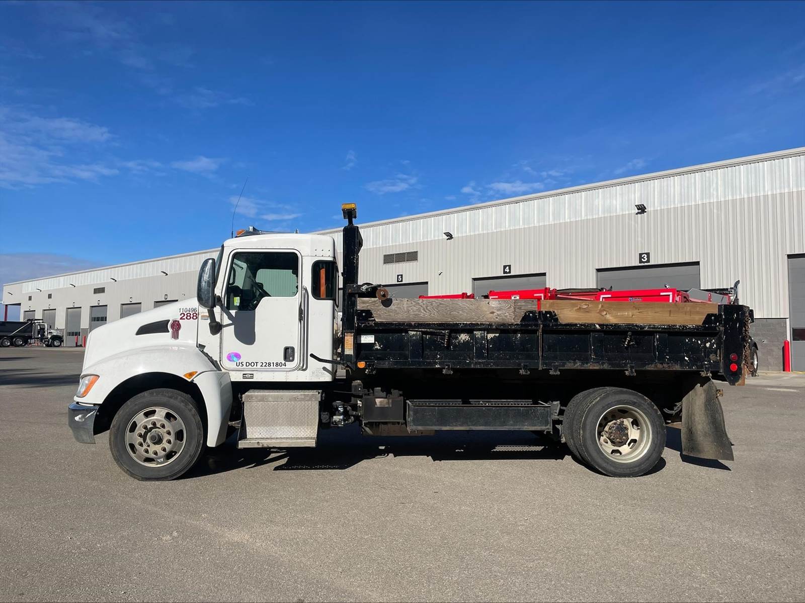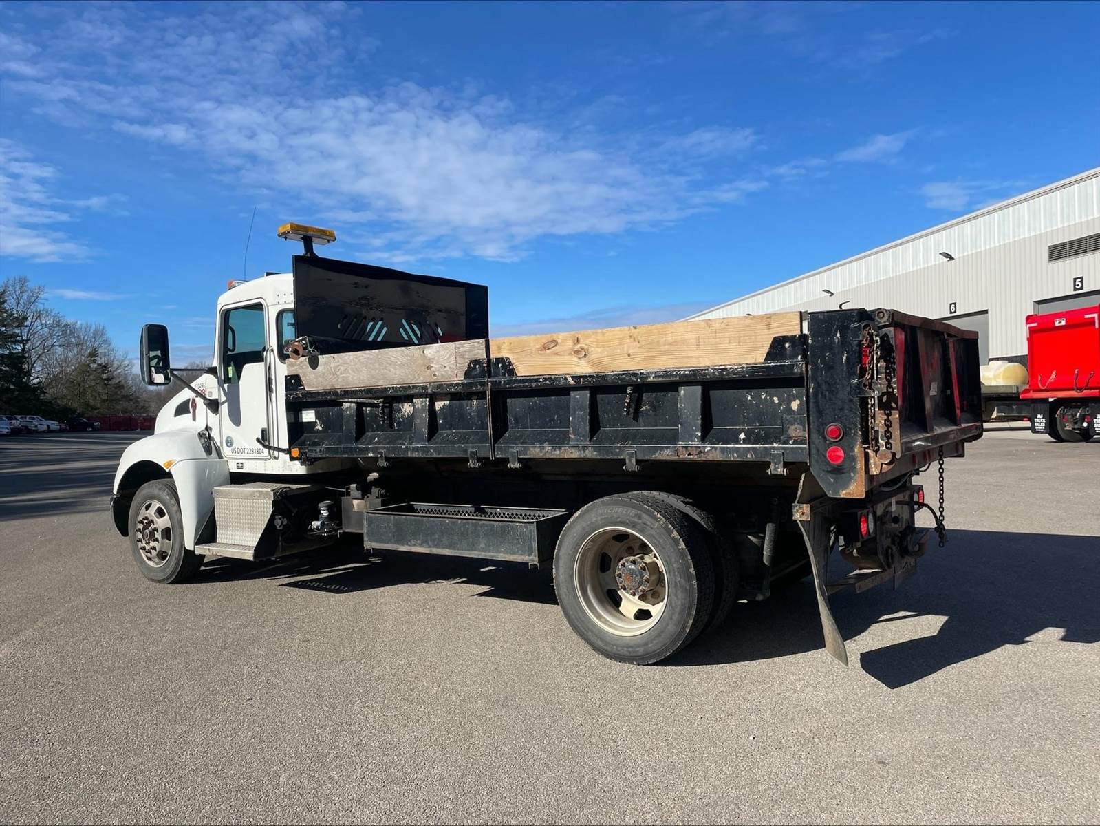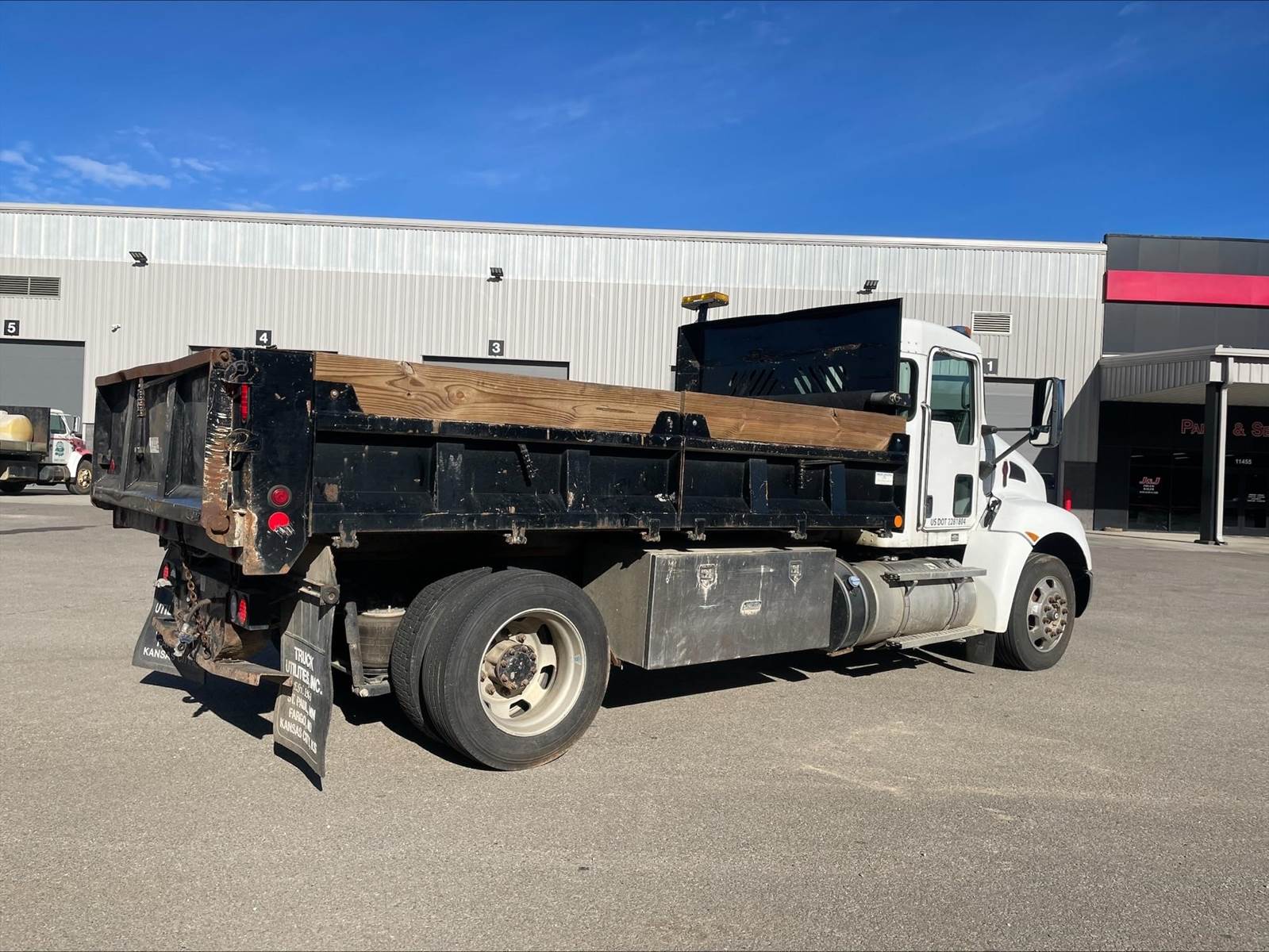 Single Axle, 14' Beau-Roc Steel Dump w/16" Fold Down Sides, PX7 Paccar 325 HP, Allison Automatic 6 Speed, 4.88 Ratio, Engine Brake, Spring Suspension, 10K FA, 16K RA, 188" WB, Wheel Lock, Manual Tailgate, Pintle Hitch w/Air, 6 & 7 Prong Pole, P/S, A/C, AM/FM CD Bluetooth, Heated Mirrors, Cruise, Power Windows, Locks, and Mirrors, 75 Gallon Aluminum Fuel Tank, 255/70R22.5 Tires on All Aluminum Wheels, Chrome Bumper, 14,980 Empty Weight, ECM Mileage 142,446 Verified