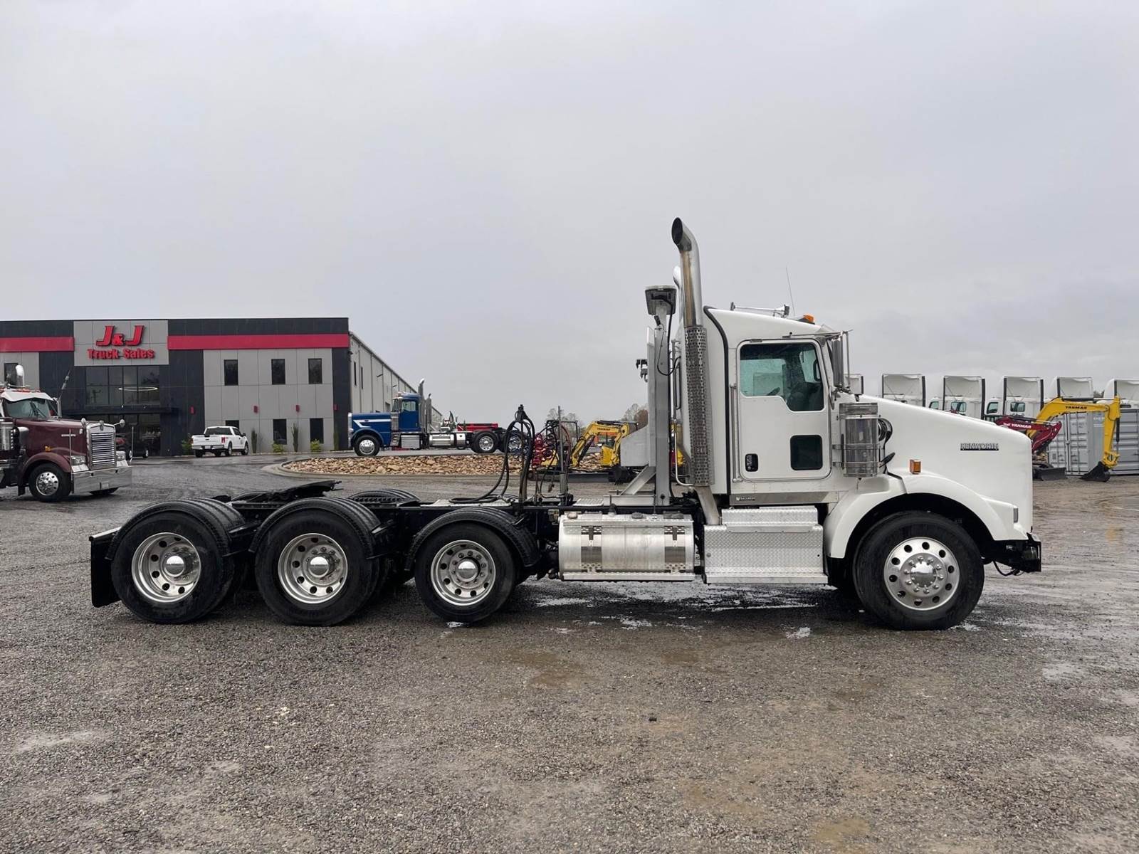 Triaxle, Extended Day Cab, ISX15 Cummins 550 HP, 18 Speed, 4.10 Ratio, 3 Stage Engine Brake, Air Ride, Double Frame, 14,320 FA, 46,000 RA, 20,280 Pusher, Dual Exhaust, Dual Stainless Breathers, 240" WB, 22'2" Bridge, Air Slide 5th Wheel, 2 Line Wet Kit, Aluminum Headache Rack, Light Bar, Diff Lock, Wheel Lock, P/S, A/C, AM/FM Bluetooth, NAVIGATION, Heated Mirrors, Cruise, Tilt/Tele Wheel, Dual High Back Seats, Power Windows and Locks, Dual Aluminum Fuel Tanks 75Gal/50Gal, 11R24.5 Tires on All Aluminum Wheels, Chrome Bumper
