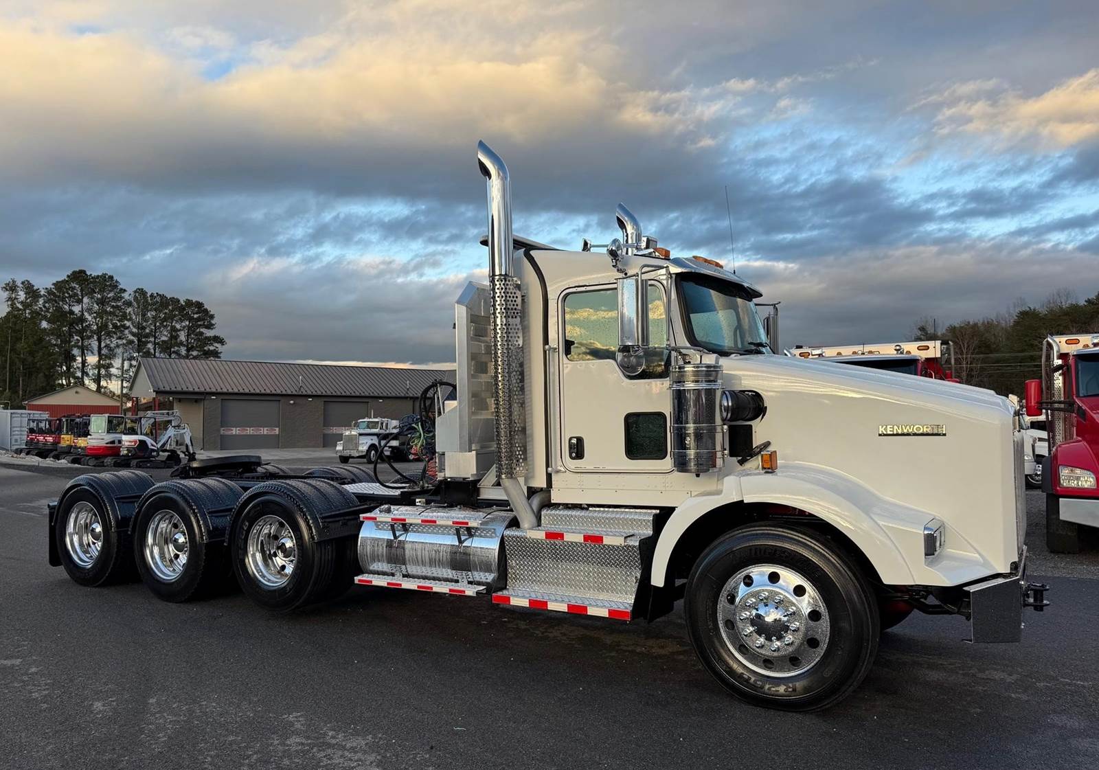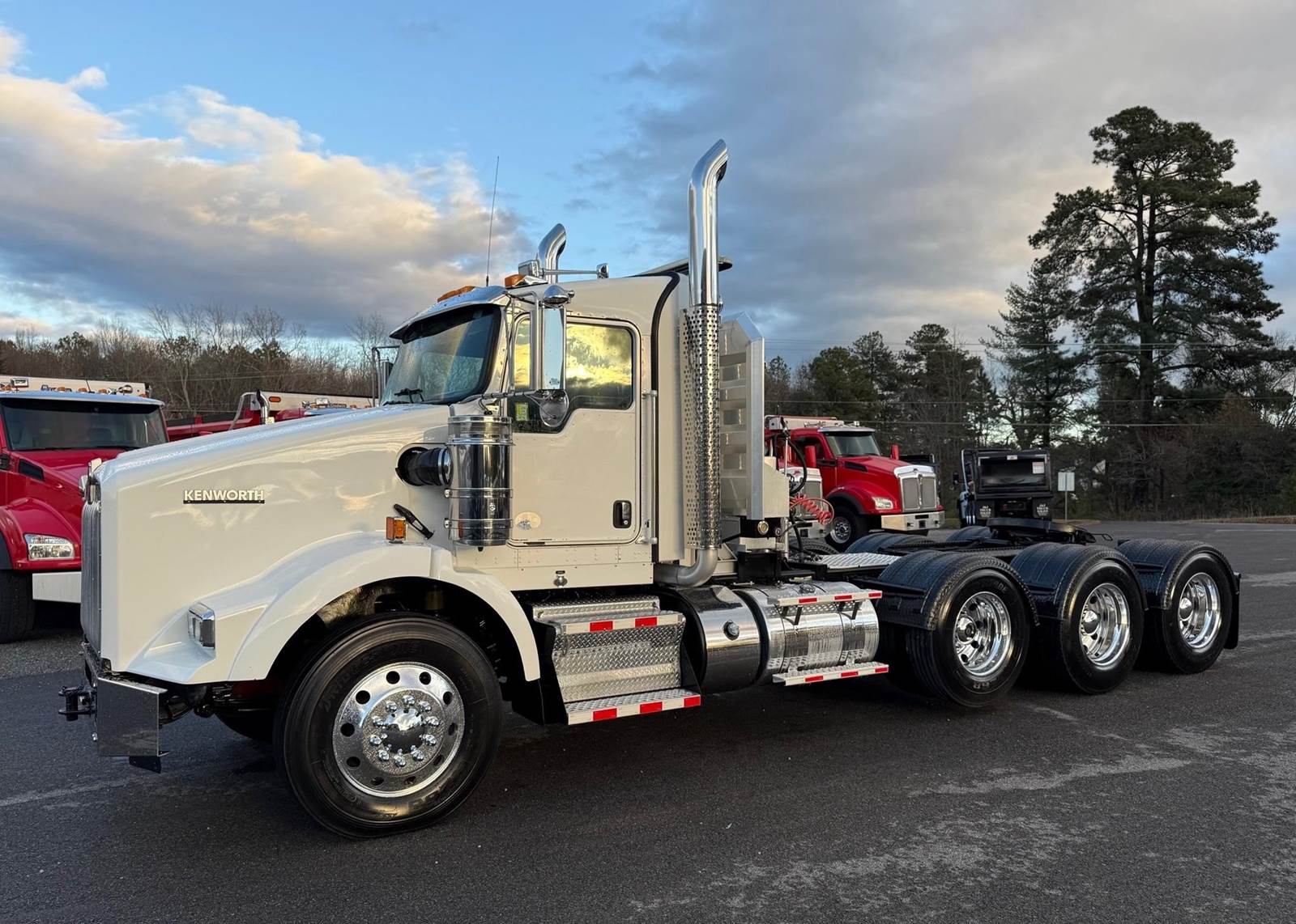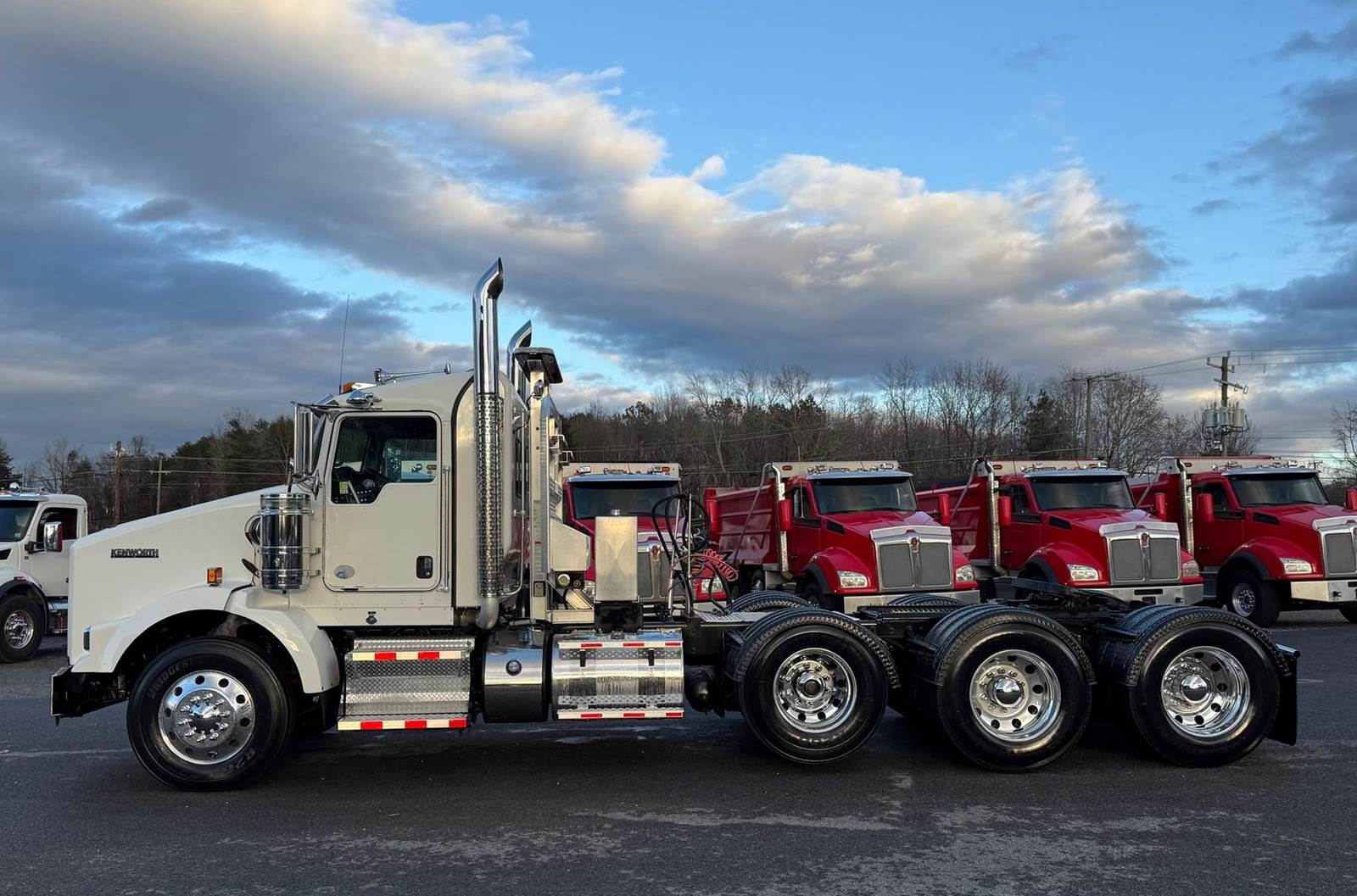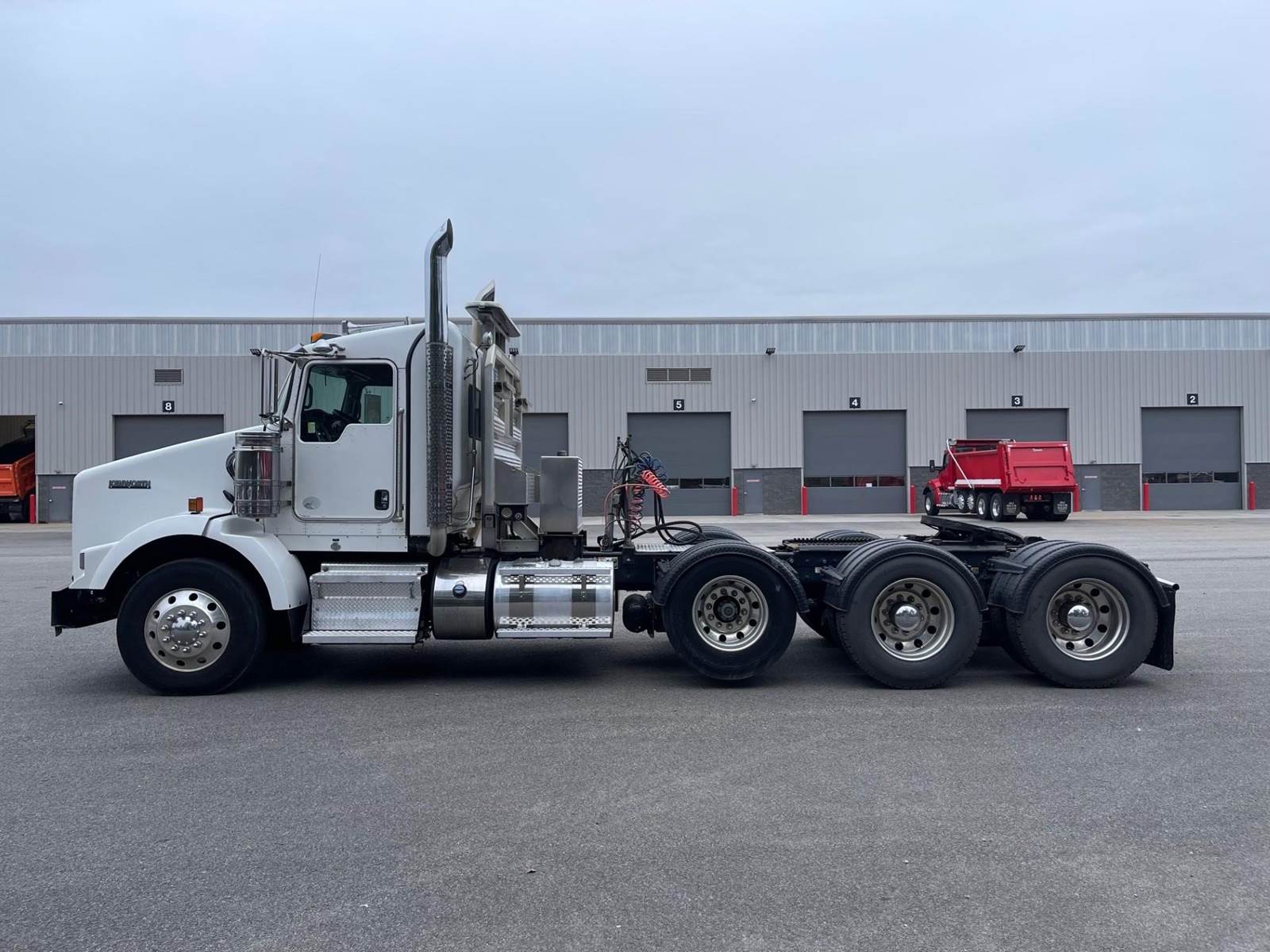 Triaxle, Extended Day Cab, ISX15 Cummins 550 HP, 18 Speed, 4.10 Ratio, 3 Stage Engine Brake, Air Ride, Double Frame, 14,320 FA, 46,000 RA, 22,500 Pusher, Dual Exhaust, Dual Stainless Breathers, 249" WB, 22'11" Bridge, Diff Lock, Wheel Lock, 2 Line Wet Kit, Aluminum Headache Rack, Light Bar, Air Slide 5th Wheel, P/S, A/C, AM/FM CD Bluetooth, NAVIGATION, Heated Mirrors, Cruise, Tilt/Tele Wheel, Power Windows, Locks, and Passenger Mirror, Dual High Back Seats, Dual Aluminum Fuel Tanks 75Gal/110 Gal, 11R24.5 Tires on All Aluminum Wheels, Chrome Bumper