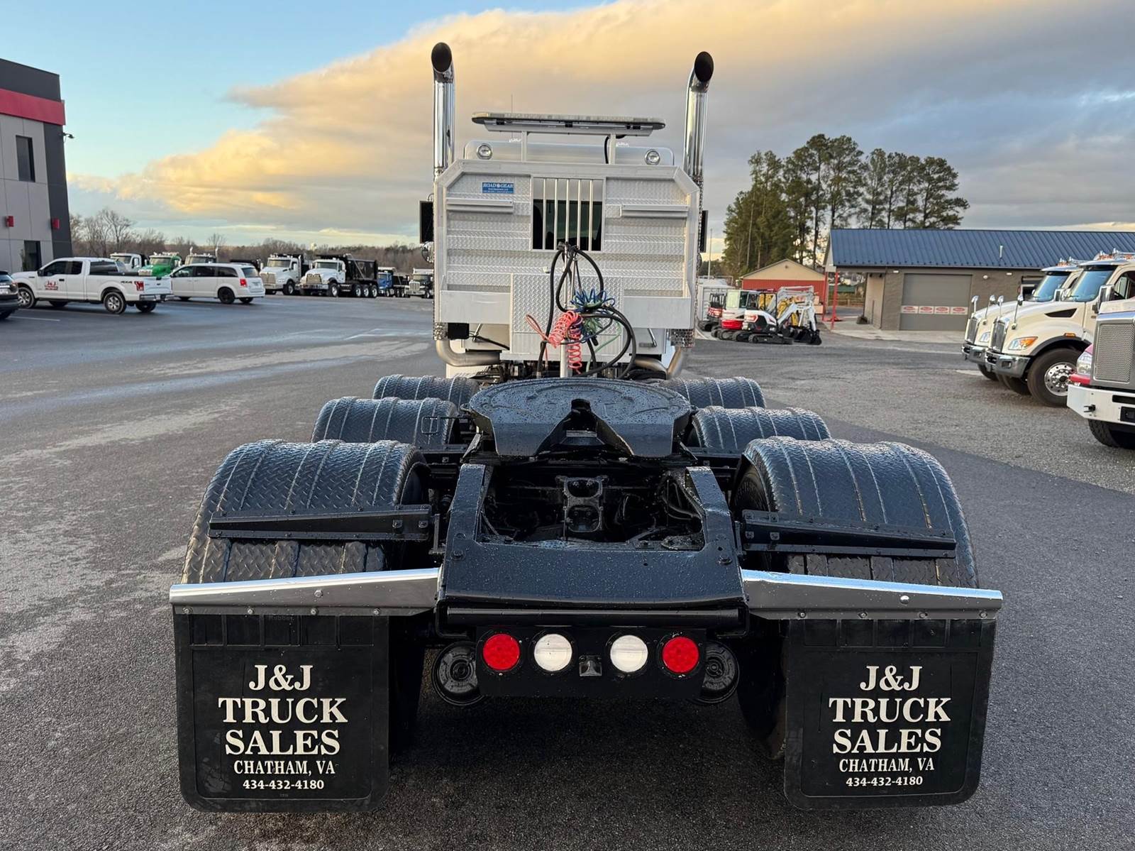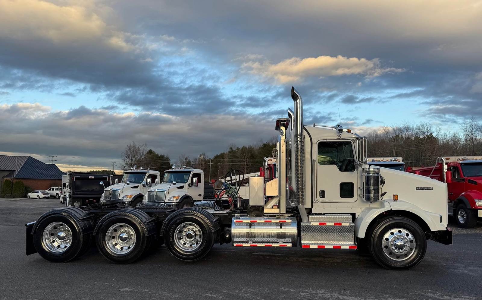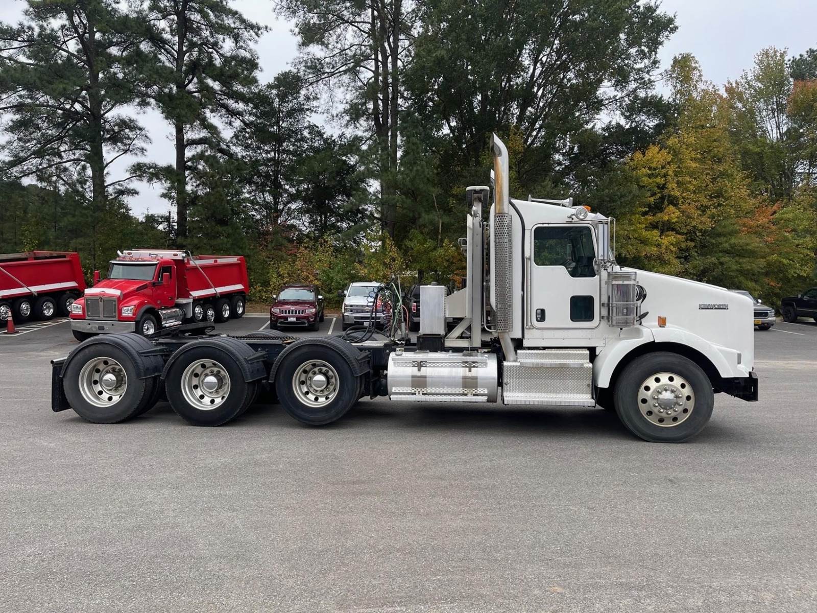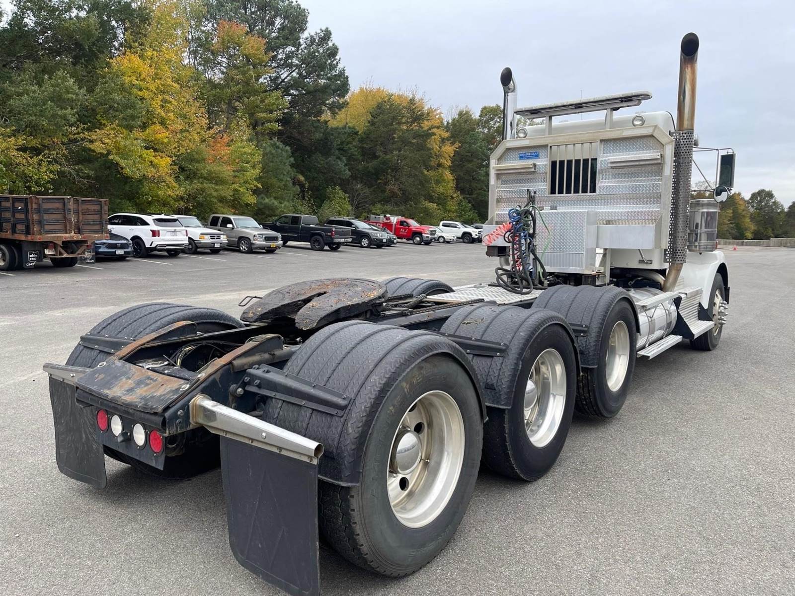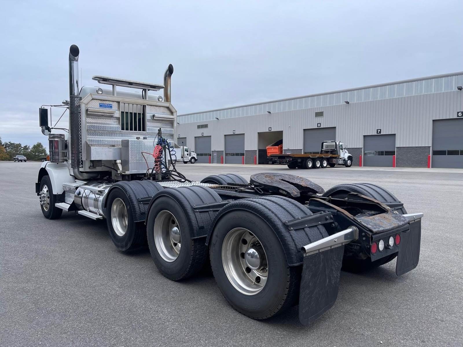 Triaxle, Extended Day Cab, ISX15 Cummins 550 HP, 18 Speed, 4.10 Ratio, 3 Stage Engine Brake, Air Ride, Double Frame, 14,320 FA, 46,000 RA, 22,500 Pusher, Dual Exhaust, Dual Stainless Breathers, 249" WB, 22'11" Bridge, Diff Lock, Wheel Lock, 2 Line Wet Kit, Aluminum Headache Rack, Light Bar, Air Slide 5th Wheel, P/S, A/C, AM/FM CD Bluetooth, NAVIGATION, Heated Mirrors, Cruise, Tilt/Tele Wheel, Power Windows, Locks, and Passenger Mirror, Dual High Back Seats, Dual Aluminum Fuel Tanks 75Gal/110 Gal, 11R24.5 Tires on All Aluminum Wheels, Chrome Bumper