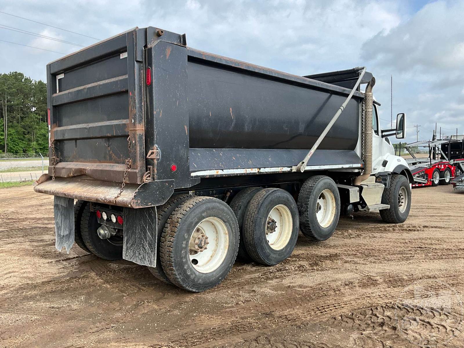 TRI-AXLE DUMP TRUCK, CUMMINS, ISX, HP 425, ALLISON, AUTOMATIC, AIR BRAKES, SPRING SUSPENSION, 20K FRONTS, 46K REARS, ENGINE BRAKE, DIFF LOCK, CRUISE CONTROL, A/C, POWER WINDOWS, POWER DOOR LOCKS, POWER MIRRORS, 16', ALUM, DUMP BODY, SPREADER APRON, AIR GATE, 66000 GVWR, ALUMINUM FRONTS STEEL REAR WHEELS, 11R24.5 TIRES, HOUR METER READS: 13788, ODOMETER READS: 335522