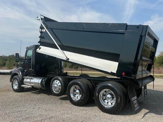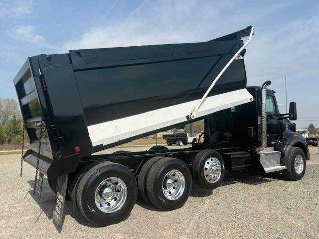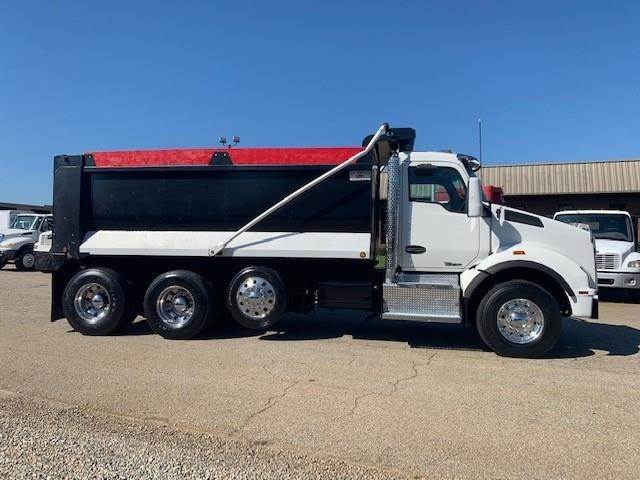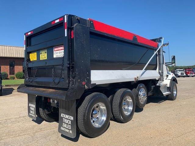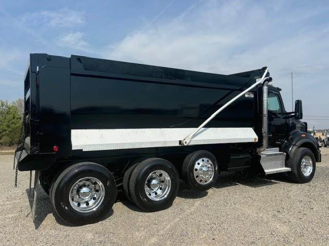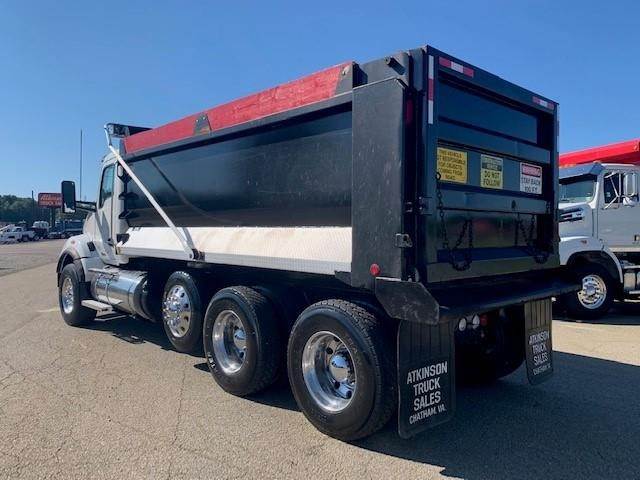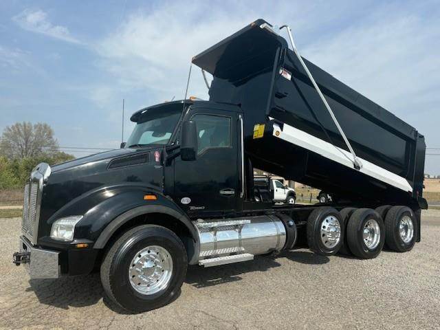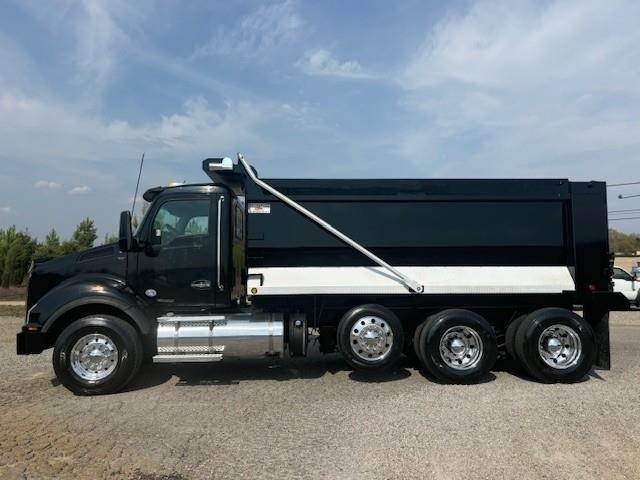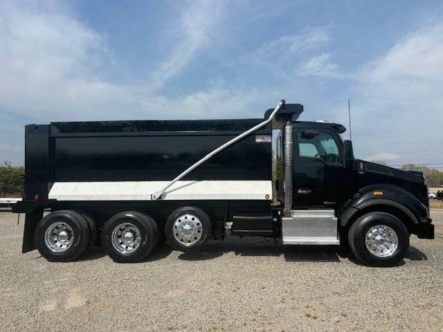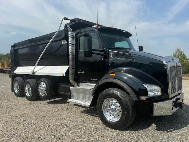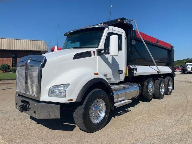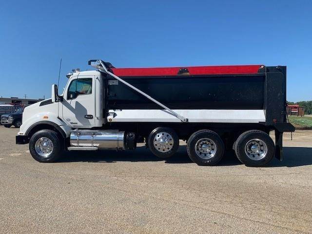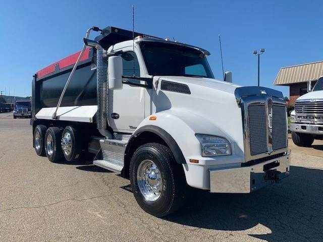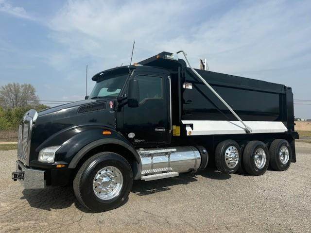 2016 Kenworth T880 --- Tri Axle, MX-13 Paccar 455 HP, Eaton-Fuller Ultrashift 8LL, 3.91 Ratio, 18,740 Front Axle, 46,000 Rear Axle, 220" Wheelbase, 20' 7" Bridge, Chalmers, Double Frame, 3 Stage Engine Brake, Air Brake, Axle & Differential, 16.5' HARDOX STEEL OX Dump Body, 54" Sides, Air Gate, Electric Tarp, 1 Steerable Lift Axle, Aluminum Front Wheels, Aluminum Rear Wheels, Single Stack, Aluminum Fuel Tank, Daylite Doors, Peep Window, Air Ride Cab, Dual High Back Seats, High Level Interior, Chrome Gauge Package, Heated Mirrors, Cruise Control, Tilt & Telescopic Steering Wheel, AM/FM, Power Windows, P/L, P/S, AC.