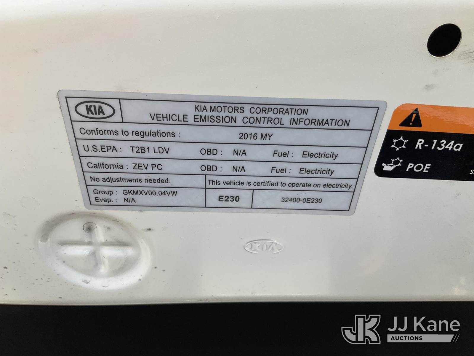 2016 Kia Soul EV 4-Door Sport Utility Vehicle, FWD, battery powered, 1-Speed Automatic, A/C, (17,723 miles) (Runs & Moves) (Takes Charge, Charger Included) This is a Titled Item NOTE: This unit is being sold AS IS/WHERE IS via Timed Auction and is located in Jurupa Valley, CA. Inspection & preview days for this unit are the 2 business days prior to the first day of items closing for this auction, item is located at 4510 Muth Way Jurupa Valley, CA 92509 and hours of operations are 8a-4p. For pre-sale questions, please contact please contact Office Staff @ (310) 353-7140. Dealer License Number 45696. (Buyer is responsible for removal. Assistance by consignor or JJ Kane Auctions is not assured.)