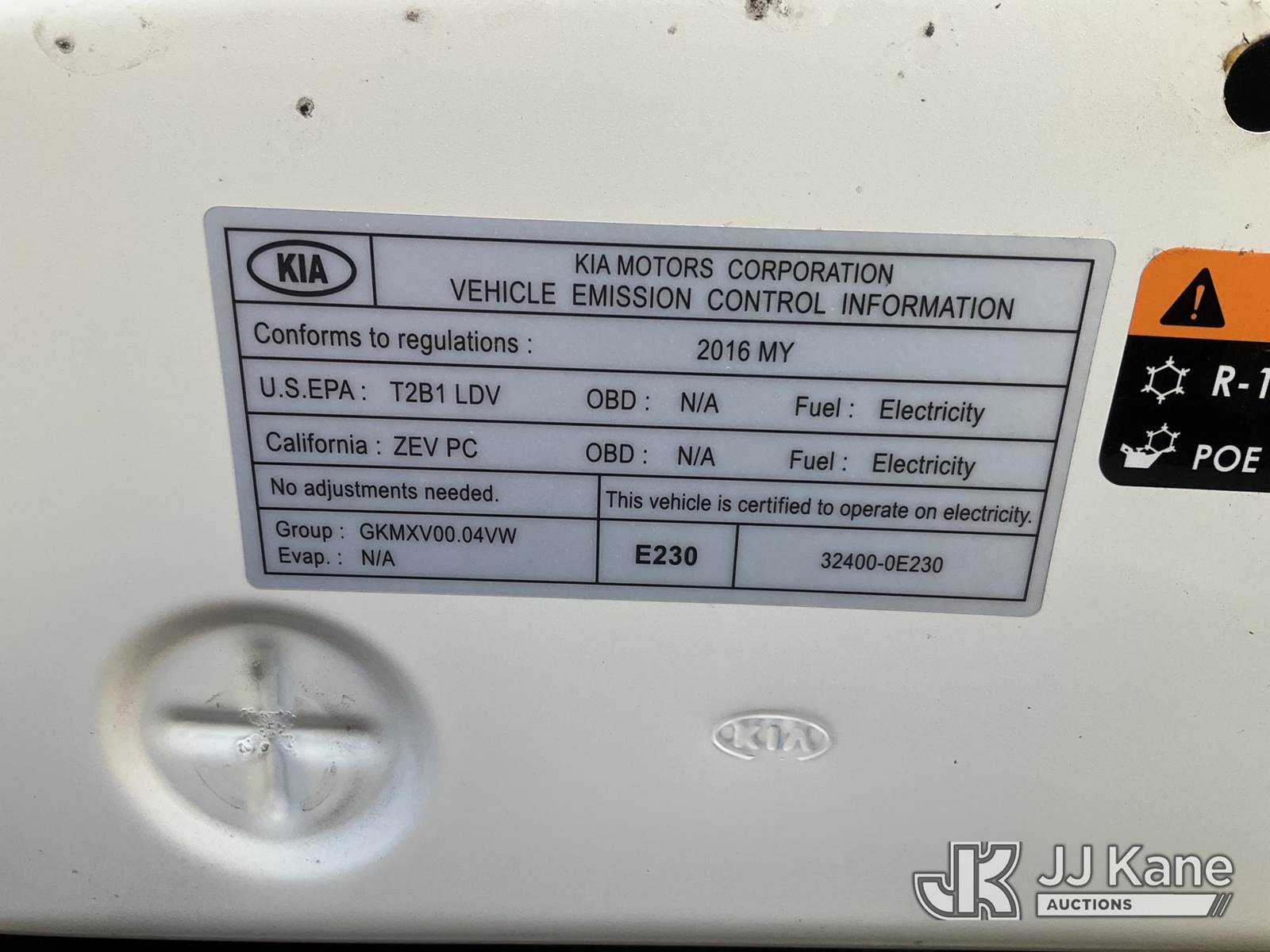 2016 Kia Soul EV 4-Door Sport Utility Vehicle, ELECTRIC, 1-Speed Automatic, A/C, (17,607 miles) (Runs & Moves) (Missing 12V Battery, Takes Charge, Charger Not Included) (Bidding Restricted to Licensed Vehicle Dealers Only), This is a Titled Item NOTE: This unit is being sold AS IS/WHERE IS via Timed Auction and is located in Jurupa Valley, CA. Inspection & preview days for this unit are the 2 business days prior to the first day of items closing for this auction, item is located at 4510 Muth Way Jurupa Valley, CA 92509 and hours of operations are 8a-4p. For pre-sale questions, please contact please contact Office Staff @ (310) 353-7140. Dealer License Number 45696. (Buyer is responsible for removal. Assistance by consignor or JJ Kane Auctions is not assured.)