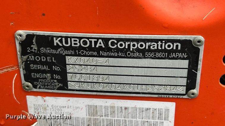 2016 Kubota KX040-4 Mini Excavator