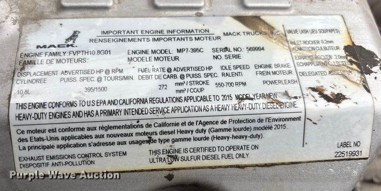 2016 Mack CXU613 semi truck