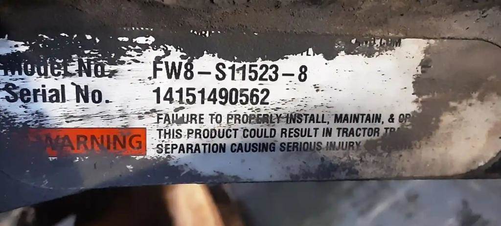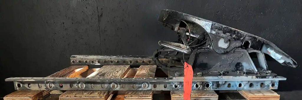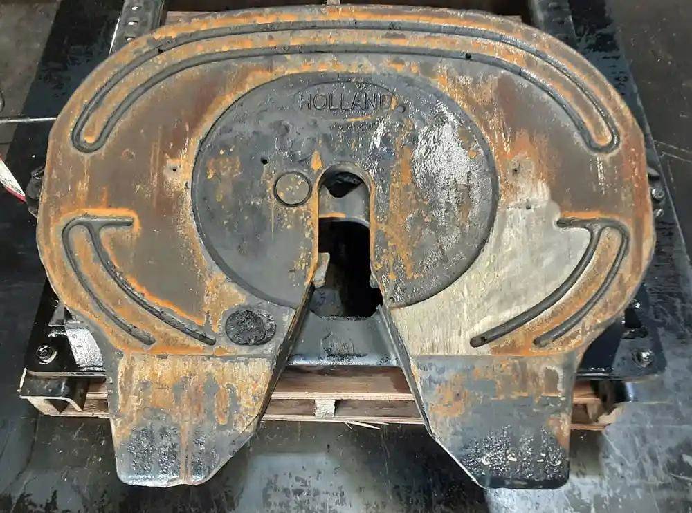 Holland FW8 Stationary Fifth Wheel, 33.5" Frame Width, 49" Rail Length, 9" Deck Height, Driver Side Release. P/N FW8-S11523-8, S/N 14151490562.