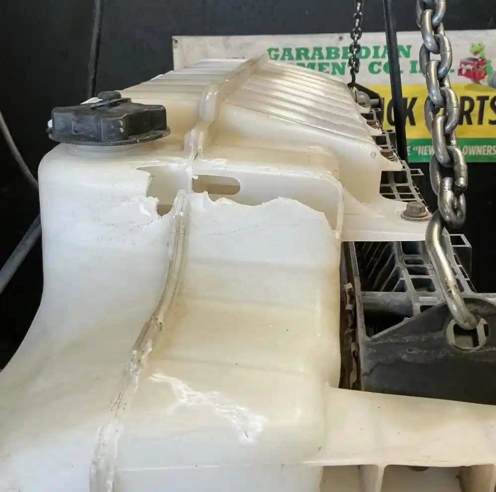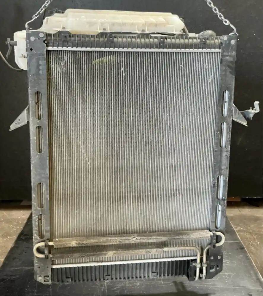2016 Mack CXU613 Radiator Assembly, P/N 21593032, T2945004, 40 5/8"H x 34 1/4"W, 2.5" Inlet - Upper Left, 2.5" Outlet - Lower Right, Oil Cooler 11.5" Centers. Overflow Tank Is Damaged.