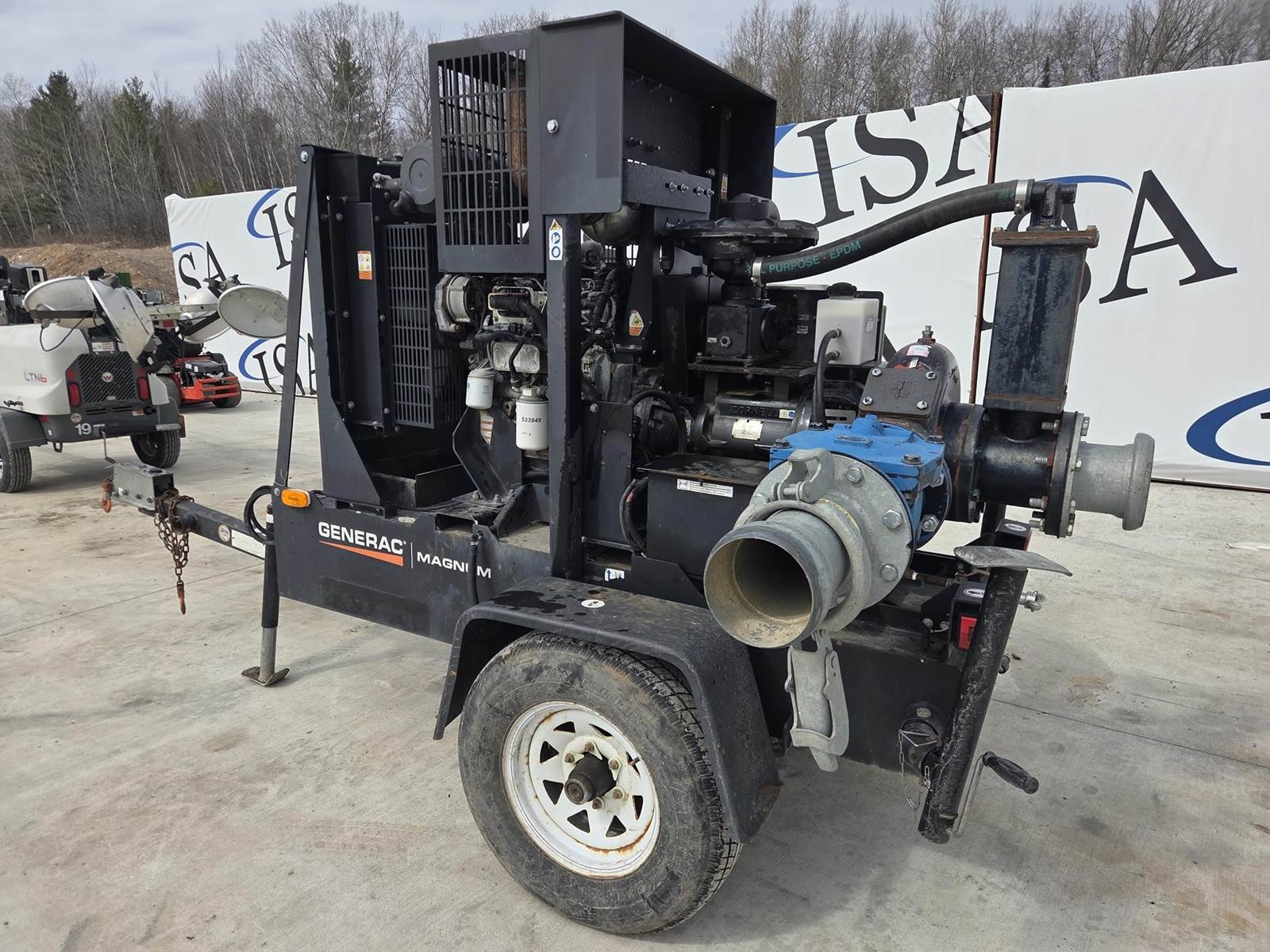 6" Dry-Prime Diesel Trash Pump, Deutz TD2.9L4 Turbo Diesel Engine, 2750-3050 GPM, Auto Start, (3) Folding Jacks, DA-66B Hydraulic Brake Actuator, 2" Ball Hitch, Trailer VIN: 5AJGS1112GB602077, 5000LB GVWR, Spring Ride Suspension, ST225/75R15 Tires, Bill of Sale Only - Title Not Available