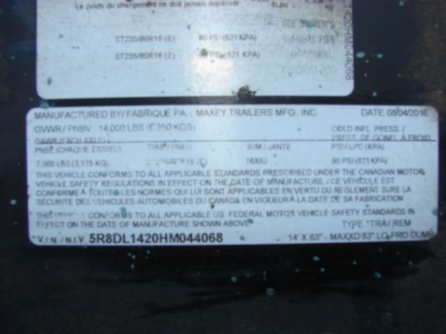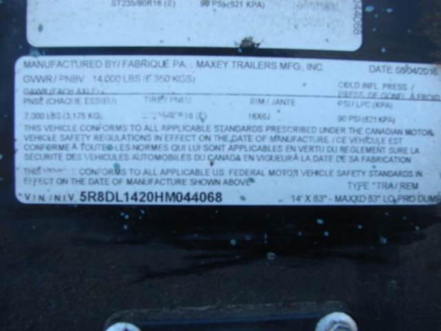 2016 MAXEY HD 14X102 Utility Trailer. Load Capacity is 14,000 LBS and come with ST235/80R - 15 Tires and is a Low-Profile Dump Trailer in very good condition.