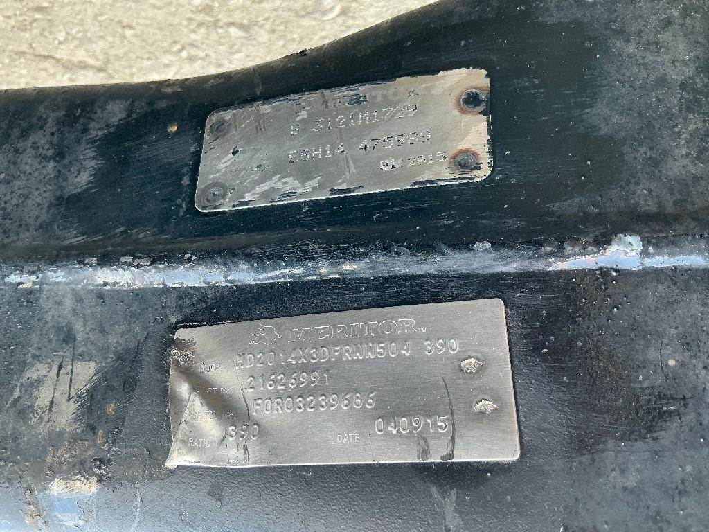 Meritor Front Rear Axle Housing, MD2014X, 10 Hole Pilot, w/ Torque Rod Bracket, Air Drum Brakes, ABS, 53.5" Inner Flange To Inner Flange, STD Track, P/N B3121M1729, S/N EGH14-475989. Removed from 2016 Volvo Corporate Air Suspension, HOUSING ONLY, DIFF SOL