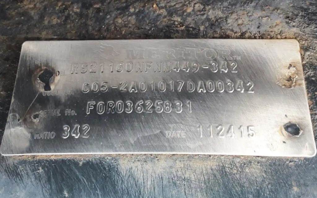 Meritor Rear Axle Housing, RS21160, w/ Torque Rod Bracket, 10 Hole Pilot, Air Drum Brakes, ABS. P/N RS21160NFNN449342, C223121Z1872, S/N FOR03625831. Removed From 2016 Reyco Air Suspension. HOUSING ONLY, DIFF SOLD SEPARATELY.