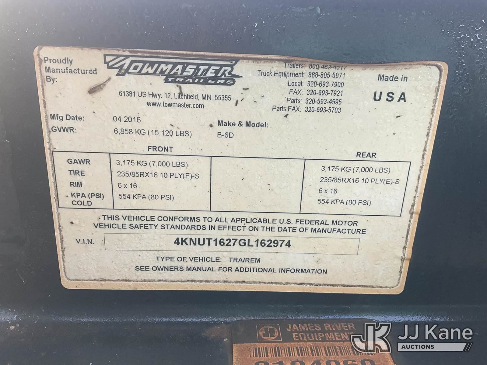 2016 Monroe Towmaster B-6D T/A Tagalong Equipment Trailer, with 16 ft level deck between wheels, This is a Titled Item NOTE: This unit is being sold AS IS/WHERE IS via Timed Auction and is located in China Grove, NC. Inspection & preview days for this unit are the 2 business days prior to the first day of items closing for this auction, item is located at 820 E NC Hwy 152 China Grove, NC 28023 and hours of operations are 8a-4p. For pre-sale questions, please contact Office Staff @ (704) 674-1113. (Buyer is responsible for removal. Assistance by consignor or JJ Kane Auctions is not assured.)