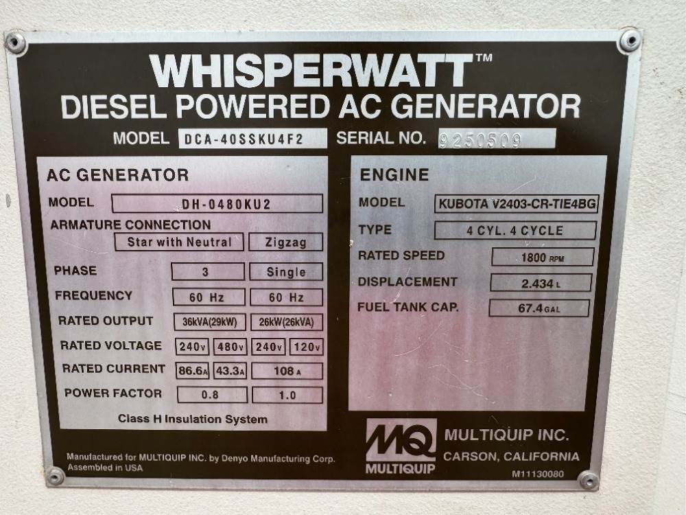 2016 MULTIQUIP DCA40SSKU4F GENERATOR