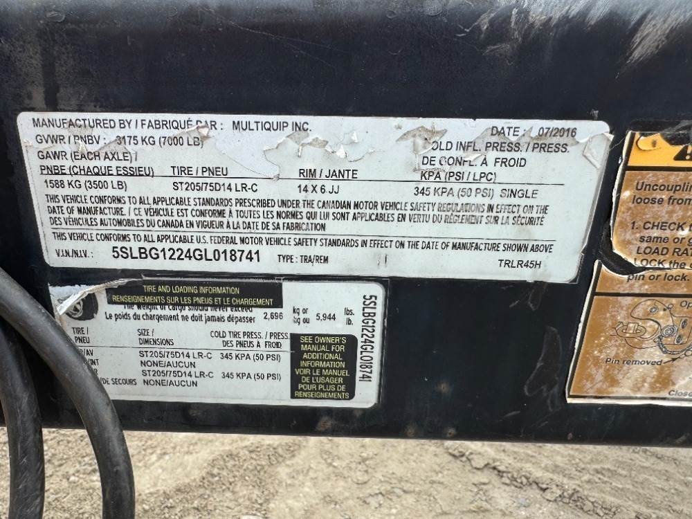 2016 MULTIQUIP DCA40SSKU4F GENERATOR, 32kw, Kubota diesel, portable. s/n:9250509; Trailer s/n:5SLB1224GL018741