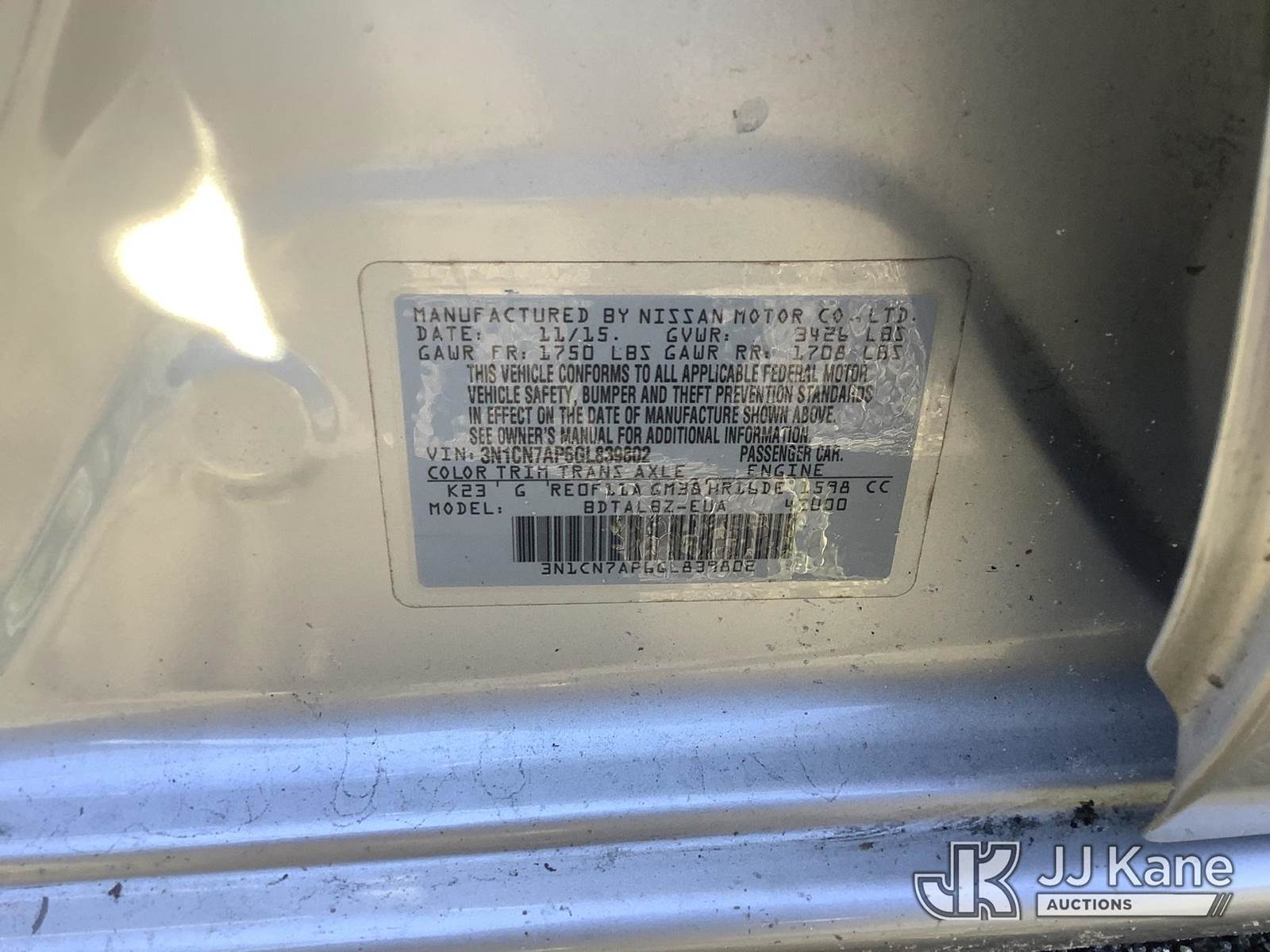 2016 Nissan Versa 1.6 S Plus 4-Door Sedan, 4-cyl, Auto, gas, A/C, (95,342 miles) (Runs) (Does Not Move, Transmission Issue, Check Engine Light On) This is a Titled Item NOTE: This unit is being sold AS IS/WHERE IS via Timed Auction and is located in Thonotosassa, FL. Inspection & preview days for this unit are the 2 business days prior to the first day of items closing for this auction, item is located at 11720 N US 301 Thonotosassa, Fl 33592 and hours of operations are 8a-4p. For pre-sale questions, please contact Office Staff @ (813) 986-2485. (Buyer is responsible for removal. Assistance by consignor or JJ Kane Auctioneers is not assured.)