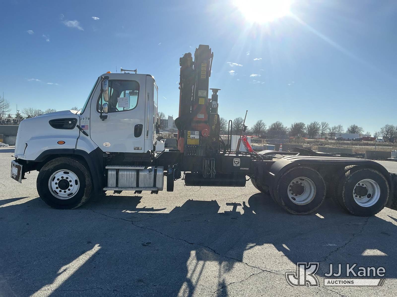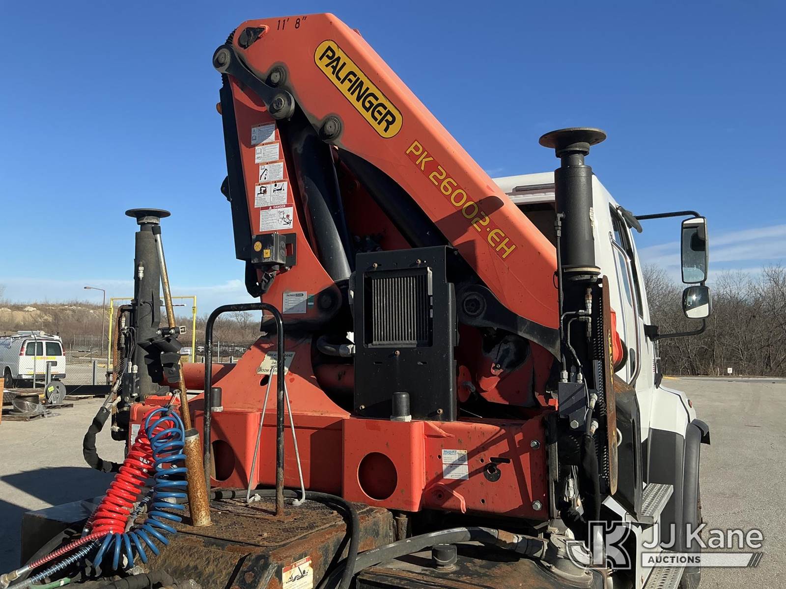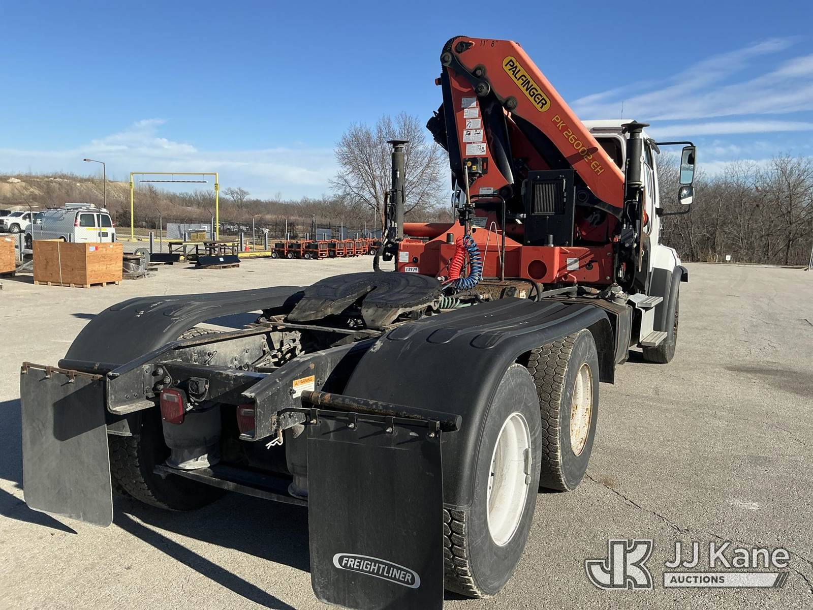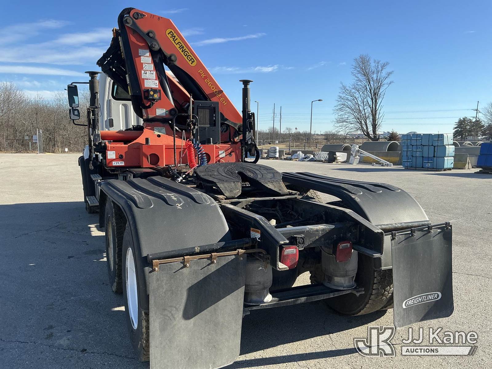 Palfinger PK26002-EH, 12,500 Lb Knuckleboom Crane s/n 100287114, with approx. 35ft reach, radio remote, mounted behind cab on 2016 FREIGHTLINER 114SD T/A Truck Tractor, 8.9L Auto, diesel, A/C, with air slide 5th wheel, wet line kit, (231,284 miles) (Runs & Moves)(Seller States: Operates) (Reads 10,365 hours) This is a Titled Item NOTE: This unit is being sold AS IS/WHERE IS via Timed Auction and is located in Kansas City, MO. For pre-sale questions or to schedule an inspection, please contact Ricky McPherson @ 816-610-2250. (Manuals provided in cab) (Buyer is responsible for removal. Assistance by consignor or JJ Kane Auctions is not assured.)